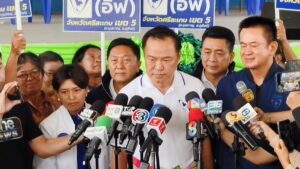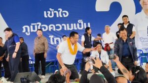 ศรีสะเกษนายกอนุทินนำทีม รัฐมนตรีภูมิใจไทย ขึ้นเวทีปราศรัย ช่วยหาเสียงเลือกตั้งซ่อม ศรีสะเกษ เขต 5 อำเภอขุนหาญ อำเภอภูสิงห์