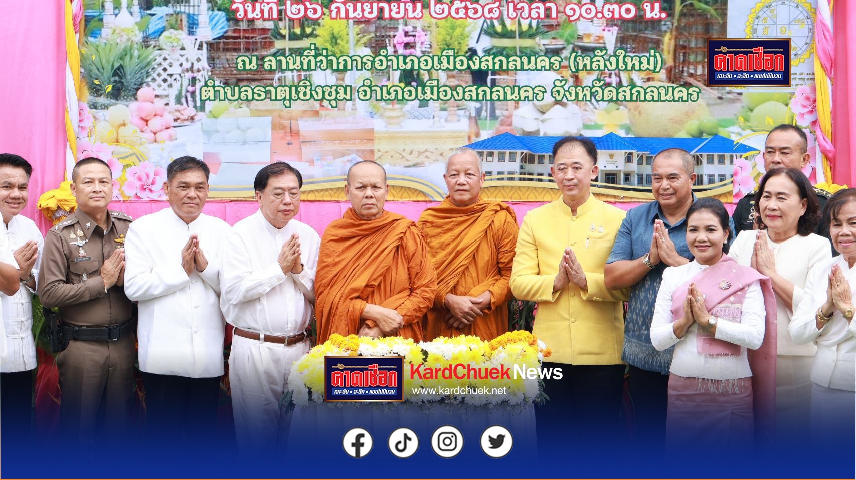 วันที่ 26 กันยายน 2568 ณ บริเวณหน้าที่ว่าการอำเภอเมืองสกลนคร (หลังเก่า) จังหวัดสกลนครได้จัดพิธีวางศิลาฤกษ์ก่อสร้างอาคารที่ว่าการอำเภอเมืองสกลนครหลังใหม่ โดยมีนายพิสิษฐ์ แร่ทอง รองผู้ว่าราชการจังหวัดสกลนคร เป็นประธานฝ่ายฆราวาส พร้อมด้วยนายเอกภพ โสภณ ปลัดจังหวัดสกลนคร นางสาวจิราภรณ์ เบิกบานดี นายอำเภอเมืองสกลนคร หัวหน้าส่วนราชการ ข้าราชการ และเจ้าหน้าที่ฝ่ายปกครอง เข้าร่วมการจัดพิธีวางศิลาฤกษ์ในครั้งนี้ ได้รับความเมตตาจาก พระเทพวชิรรังษี เจ้าคณะจังหวัดสกลนคร (ธรรมยุต) เป็นประธานฝ่ายสงฆ์
