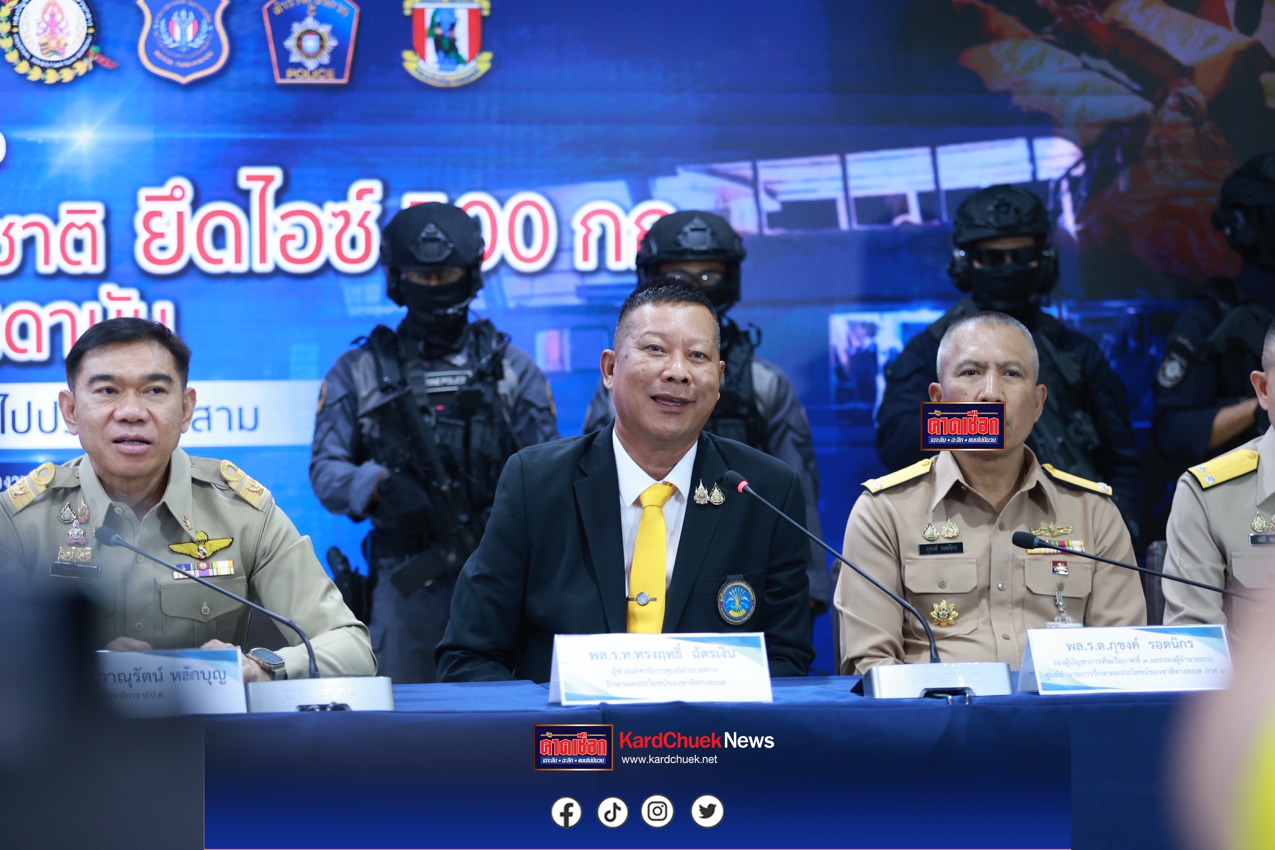 วันจันทร์ที่ 29 กันยายน 2568 พลตำรวจโท ภาณุรัตน์ หลักบุญ เลขาธิการ ป.ป.ส. พร้อมด้วย นายปฤณ เมฆานันท์ ผู้อำนวยการสำนักปราบปรามยาเสพติด สำนักงาน ป.ป.ส., พล.ร.ท.ทรงฤทธิ์ ฉัตรเงิน ผู้ช่วยเลขาธิการ ศูนย์อำนวยการรักษาผลประโยชน์ของชาติทางทะเล, พล.ร.ต.ภุชงค์ รอดนิกร รองผู้บัญชาการกองทัพเรือภาคที่ 3 และรองผู้อำนวยการศูนย์อำนวยการรักษาผลประโยชน์ของชาติทางทะเลภาค 3, พล.ร.ต.ปณิธิ ทองเจือ ผู้อำนวยการสำนักการข่าวกรมข่าวทหารเรือ, พล.ต.ต.โสภณ สารพัฒน์ รองผู้บัญชาการตำรวจสอบสวนกลาง, พล.ต.ต.เศรษฐสิริ นิพภยะ ผู้บังคับการตำรวจน้ำ และ พ.ต.อ.สรวิศ เสมอใจ ผู้กำกับการ 2 กองบังคับการตำรวจปราบปรามยาเสพติด 4 กองบัญชาการตำรวจปราบปรามยาเสพติด