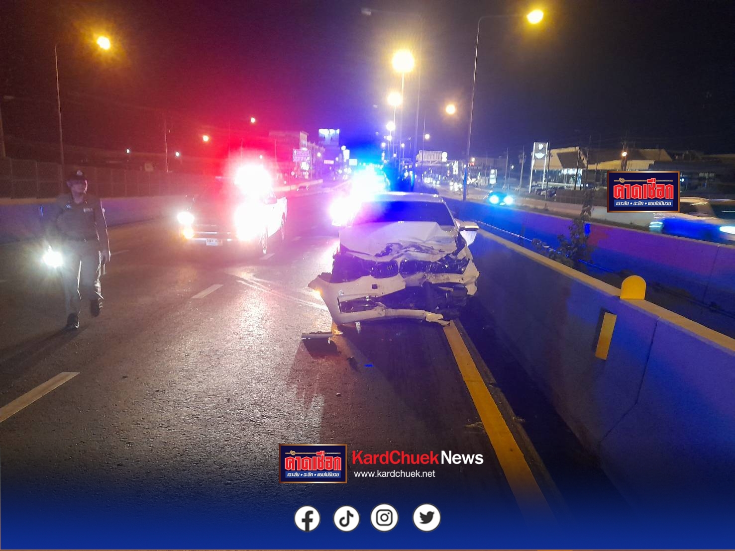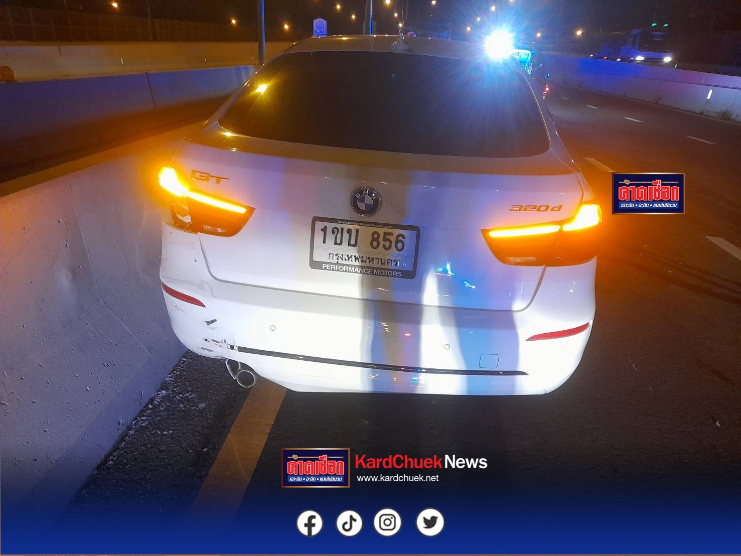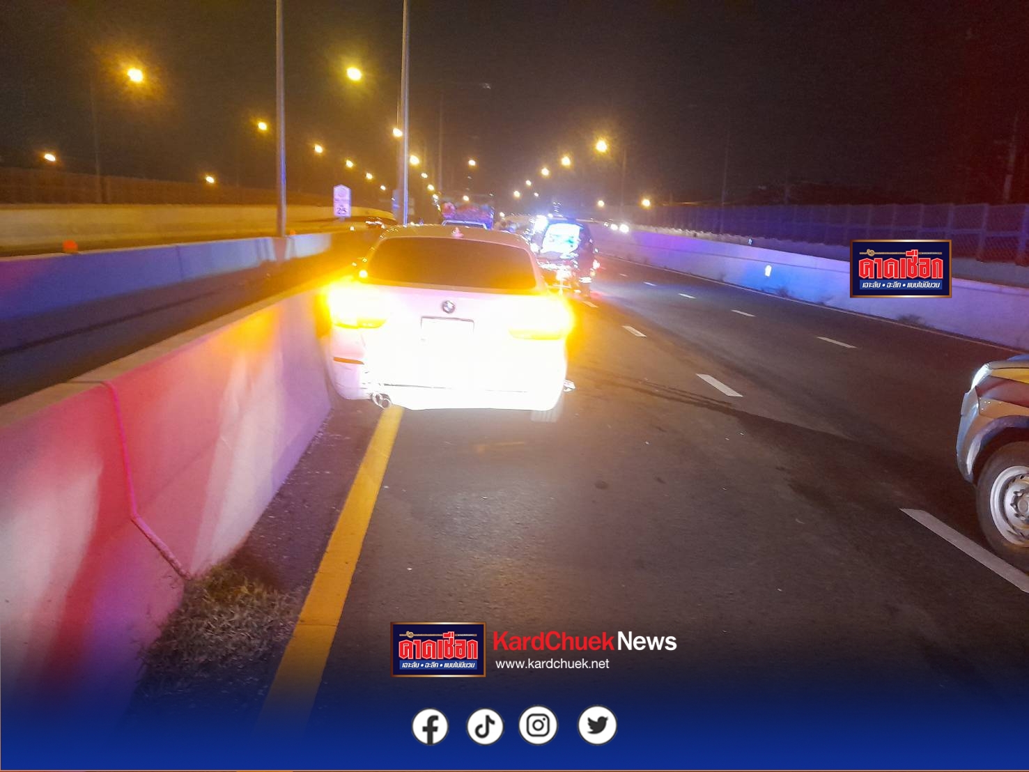 จากเหตุการณ์วานนี้ที่ผ่านมา (29 ก.ย.68) เวลา 21.40 น. เจ้าหน้าที่ตำรวจ สภ.ชัยพฤกษ์ และอาสาสมัครป่อเต็กตึ๊งเข้าตรวจสอบเหตุรถเก๋ง BMW สีขาวขับย้อนศรบนถนนราชพฤกษ์ ขาออก หน้าศูนย์การค้าสัมมากร เพลส ต.อ้อมเกร็ด อ.ปากเกร็ด จ.นนทบุรี ทำให้รถหลายคันเบรกกะทันหันและชนต่อเนื่อง รวมถึงรถหรู Porsche 911 Carrera และ Porsche Cayenne s รวมความเสียหาย 5 คัน ก่อนที่ BMW จะขับย้อนศรต่อไปชนประสานงากับรถกระบะบรรทุกมะพร้าวเต็มคันบนสะพานข้ามคลองบางบัวทองจนคนขับบาดเจ็บ และยังมีรถเก๋งมิตซูบิชิสีดำกับรถแท็กซี่เฉี่ยวชนจากการหักหลบ มีรถเสียหายรวม 10 คัน โดยกล้องหน้ารถผู้เสียหายสามารถบันทึกภาพ BMW ขับย้อนศรไว้ได้ ขณะที่ผู้เสียหายยืนยันสาเหตุมาจากการเบรกหลบ BMW จนเกิดอุบัติเหตุซ้ำซ้อนต่อเนื่อง