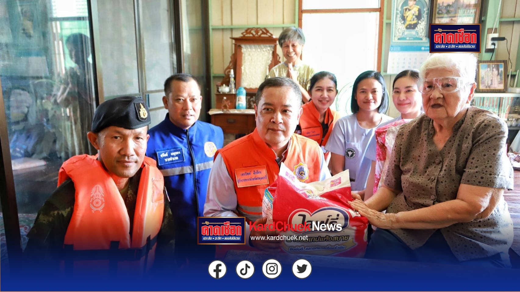 ปทุมธานี ผู้ว่าฯปทุมคนใหม่ลุยน้ำเยี่ยมชาวบ้าน มอบถุงยังชีพกลุ่มเปราะบาง 2 อำเภอริมฝั่งเจ้าพระยา