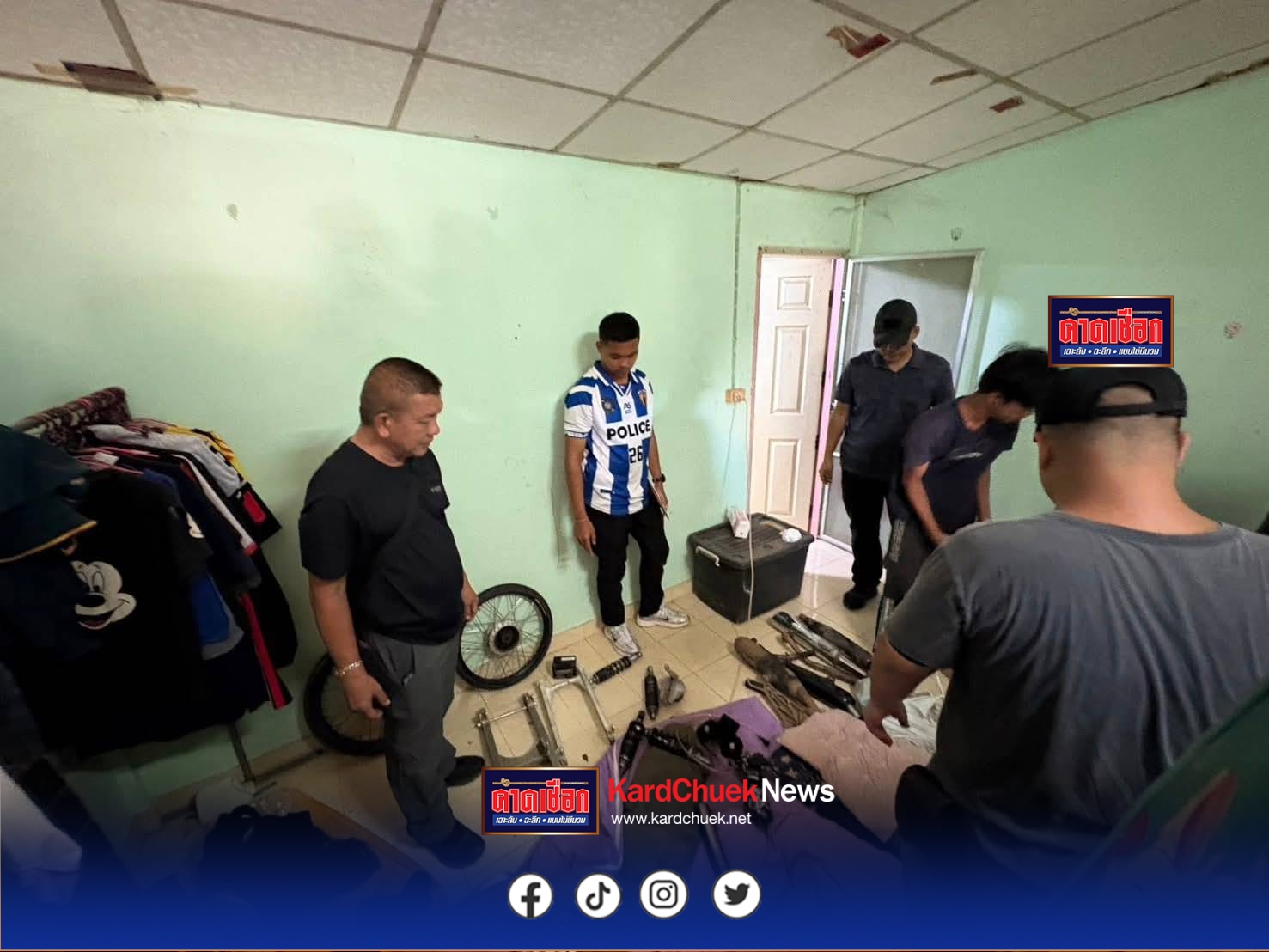 รวบ 4 โจ๋ศรีชาวมหาโพฺธิบุกชำแหละชิ้นส่วนรถจยย.คาที่ตรวจยึดรถโรงพักประจันตคามได้เพียงข้ามวันหลัง ตามจากกล้องวงจรปิด