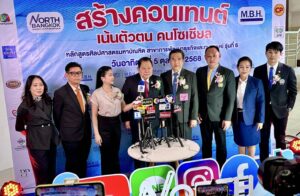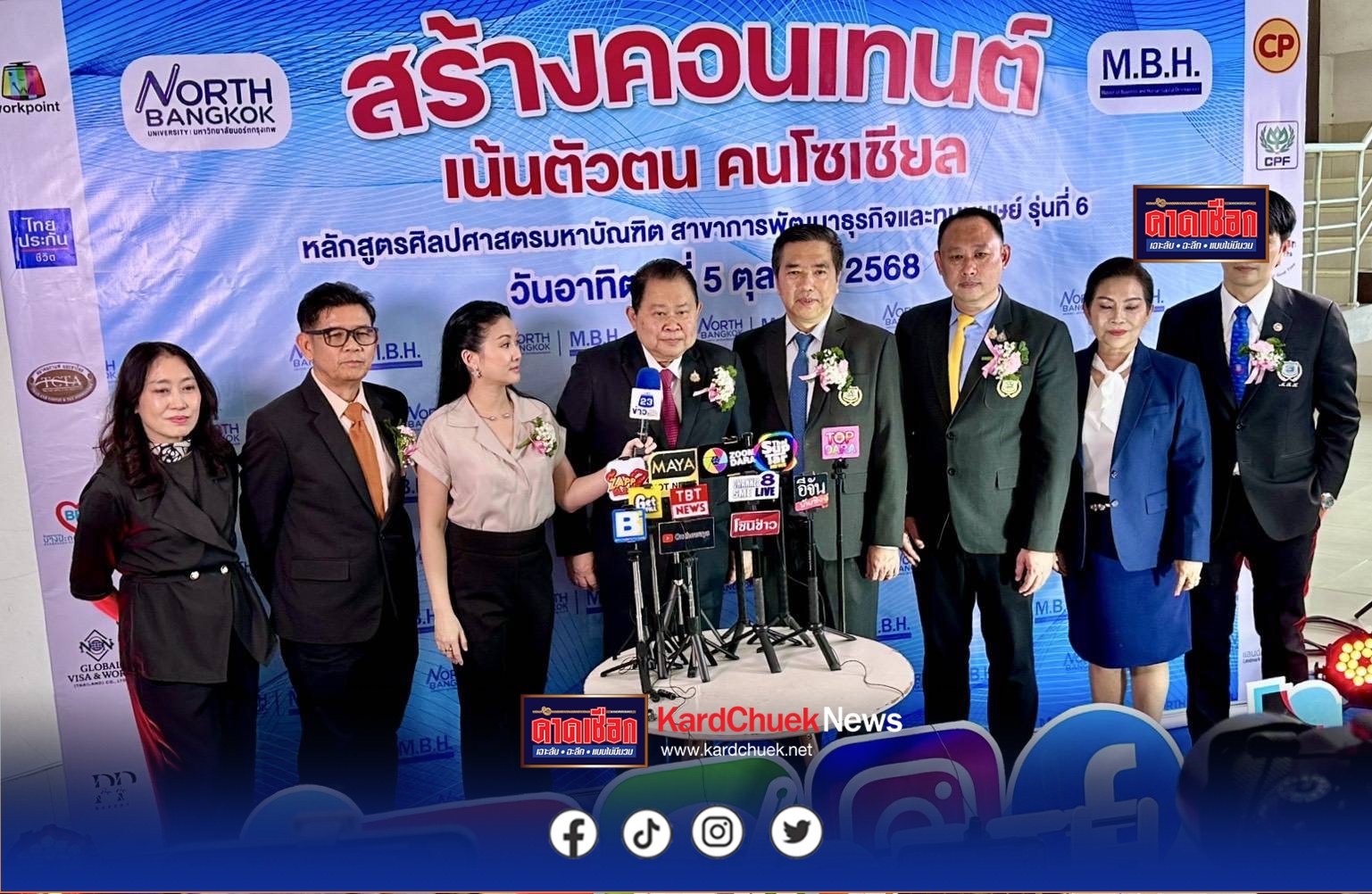 เมื่อวันที่ 5 ต.ค.2568 ที่มหาวิทยาลัยนอร์ทกรุงเทพ วิทยาเขตรังสิต นายไชยา พรหมา รองประธานสภาผู้แทนราษฎร คนที่หนึ่ง เป็นประธานเปิดงานเสวนา “การสร้างคอนเทนต์เน้นตัวตนคนโซเชียล” จัดโดยนักศึกษาปริญญาโท สาขาการพัฒนาธุรกิจและทุนมนุษย์ คณะศิลปศาสตร์ มหาวิทยาลัยนอร์ทกรุงเทพ รุ่นที่ 6