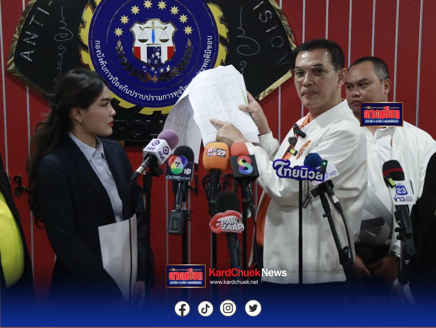 เมื่อเวลา 10.30 น. วันที่ 7 ต.ค. ที่กองบังคับการป้องกันและปราบปรามการทุจริตและประพฤติมิชอบ (บก.ปปป.) ชั้น 16 อาคารพิทักษ์สันติ กองบัญชาการตำรวจสอบสวนกลาง นายอนันต์ชัย ไชยเดช ประธานมูลนิธิทนายความกองทัพธรรม พร้อมคณะ เดินทางเข้ายื่นหนังสือร้องเรียนต่อ พล.ต.ต.จรูญเกียรติ ปานแก้ว รอง ผบช.ก. เพื่อขอให้ตรวจสอบพฤติการณ์ของ พระคึกฤทธิ์ สวัสดิผล หรือ “พระคึกฤทธิ์ โสตฺถิผโล” เจ้าอาวาสวัดนาป่าพง จังหวัดปทุมธานี และพวก รวม 13 คน