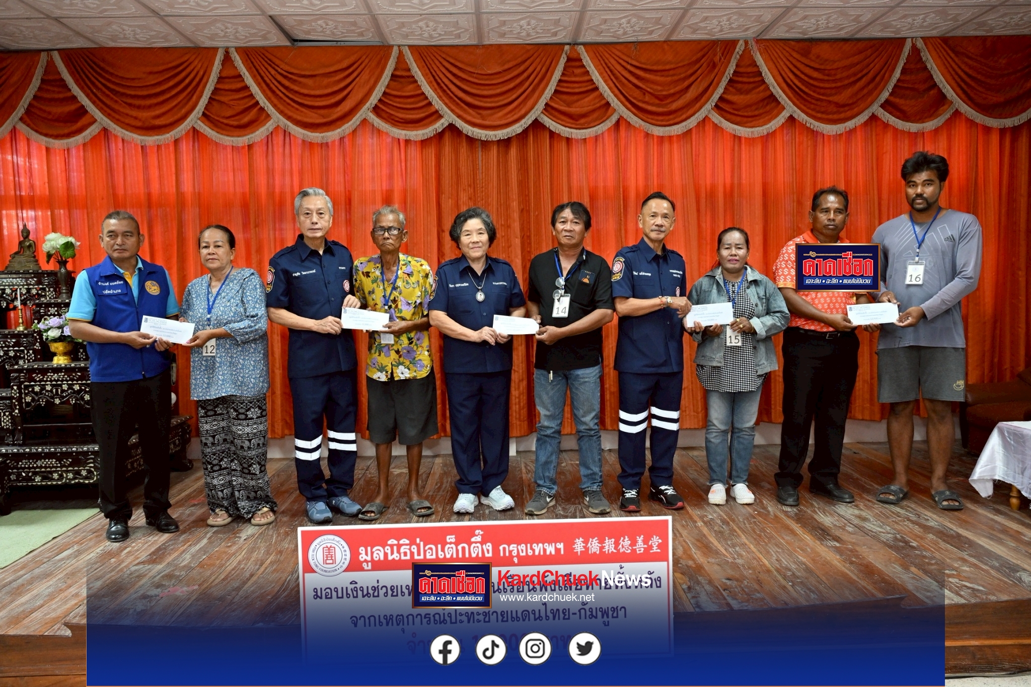 มูลนิธิป่อเต็กตึ๊ง จัดงบฯ กว่า 4.6 แสนบาท ลงพื้นที่จังหวัดอุบลราชธานี ศรีสะเกษ และสุรินทร์ มอบเงินช่วยเหลือกรณีบ้านพังเสียหายทั้งหลังจากเหตุการณ์ปะทะชายแดนไทย-กัมพูชา