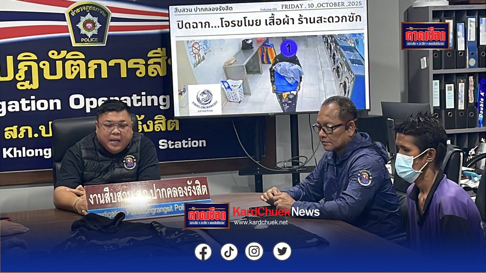 พ.ต.ท.สิรภพ บัวหลวง รอง ผกก.สส.สภ.ปากคลองรังสิต เปิดเผยว่า การจับกุมครั้งนี้สืบเนื่องมาจากวันที่ 26 กันยายน 2568 เวลา 00.40 น.และ 08.40 น. ได้มีคนร้ายเข้ามาก่อเหตุลักทรัพย์เสื้อผ้าที่ร้านสะดวกซัก ภายในหมู่บ้านเมืองเอก ม.7 ต.หลักหก อ.เมืองปทุมธานี จ.ปทุมธานี โดยคนร้ายได้เสื้อผ้าของผู้เสียหายเป็นนักศึกษาปี 2 บริหาร ม.รังสิต ไปจำนวนมาก โดยหลังเกิดเหตุผู้เสียหายได้เดินทางเข้าแจ้งความกับพนักงานสอบสวน สภ.ปากคลองรังสิต
