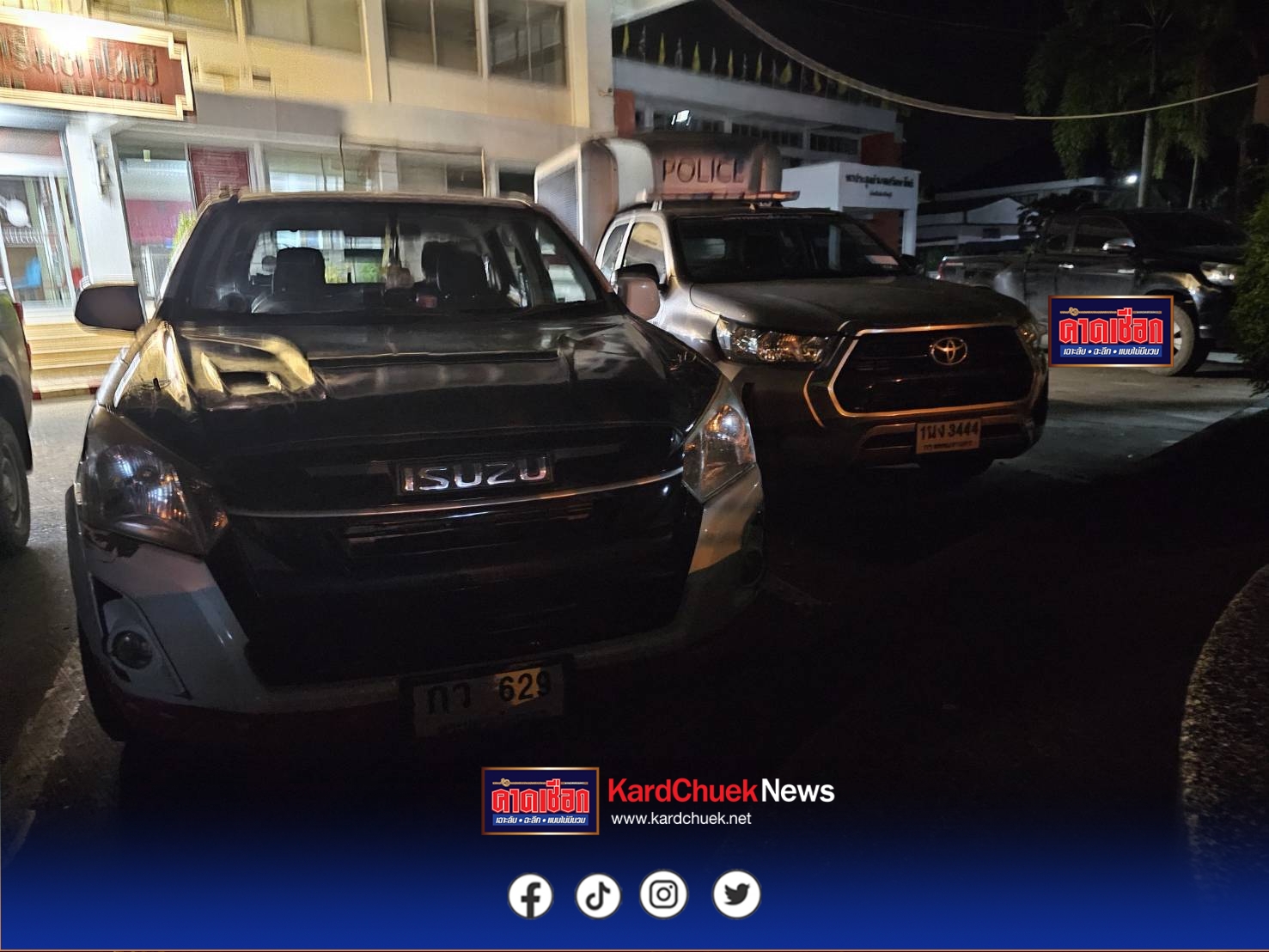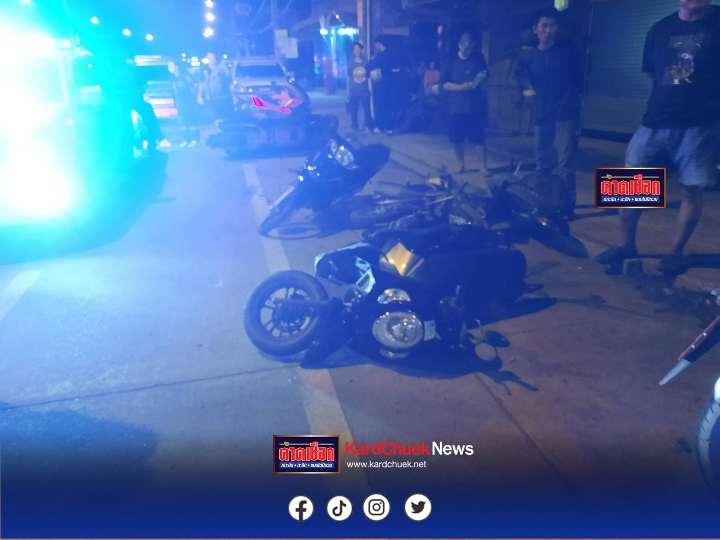 ต่อมาเพจ สภ.ศรีมหาโพธิสถานีตำรวจภูธรศรีมหาโพธิ ลงภาพเหตุการณ์รถ จยย.4 คันที่ถูกกระบะเฉี่ยวชนล้มบนถนนพร้อมข้อความระบุว่า … รายงานเหตุเฉี่ยวชนแล้วหลบหนี เมื่อวันที่ 12 ตุลาคม 2568 เวลา 01.30 น. พนักงานสอบสวนเวรได้รับแจ้งเหตุรถยนต์กระบะเฉี่ยวชนรถจักรยานยนต์ มีผู้ได้รับบาดเจ็บและทรัพย์สินเสียหาย จึงรายงานผู้บังคับบัญชาและออกตรวจที่เกิดเหตุทันที