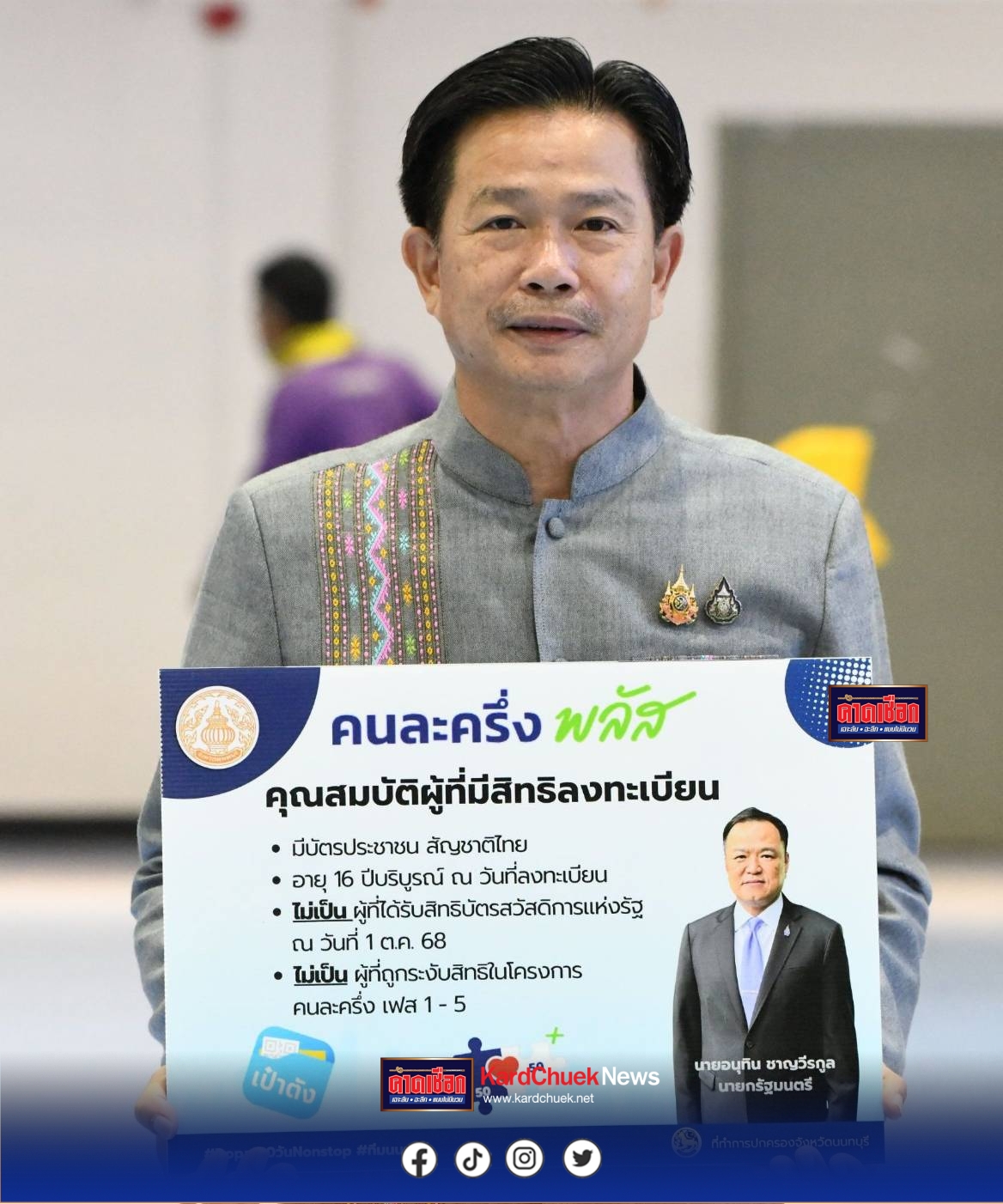 กิจกรรมดังกล่าวจัดโดยที่ทำการปกครองจังหวัดนนทบุรี เพื่อสร้างความเข้าใจและความร่วมมือระหว่างผู้นำท้องถิ่นในการขับเคลื่อนโครงการ “คนละครึ่ง พลัส” ให้เข้าถึงประชาชนอย่างทั่วถึง ให้บรรลุเป้าหมายในการกระตุ้นเศรษฐกิจฐานรากและบรรเทาภาระค่าครองชีพของประชาชน