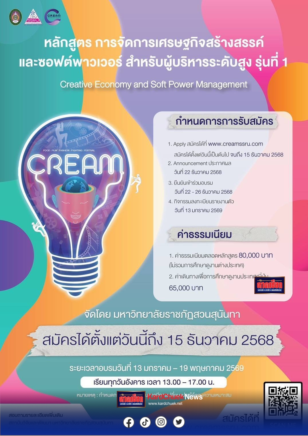 เปิดรับสมัครแล้ว “หลักสูตรการจัดการเศรษฐกิจสร้างสรรค์และซอฟต์พาวเวอร์ สำหรับผู้บริหารระดับสูง”