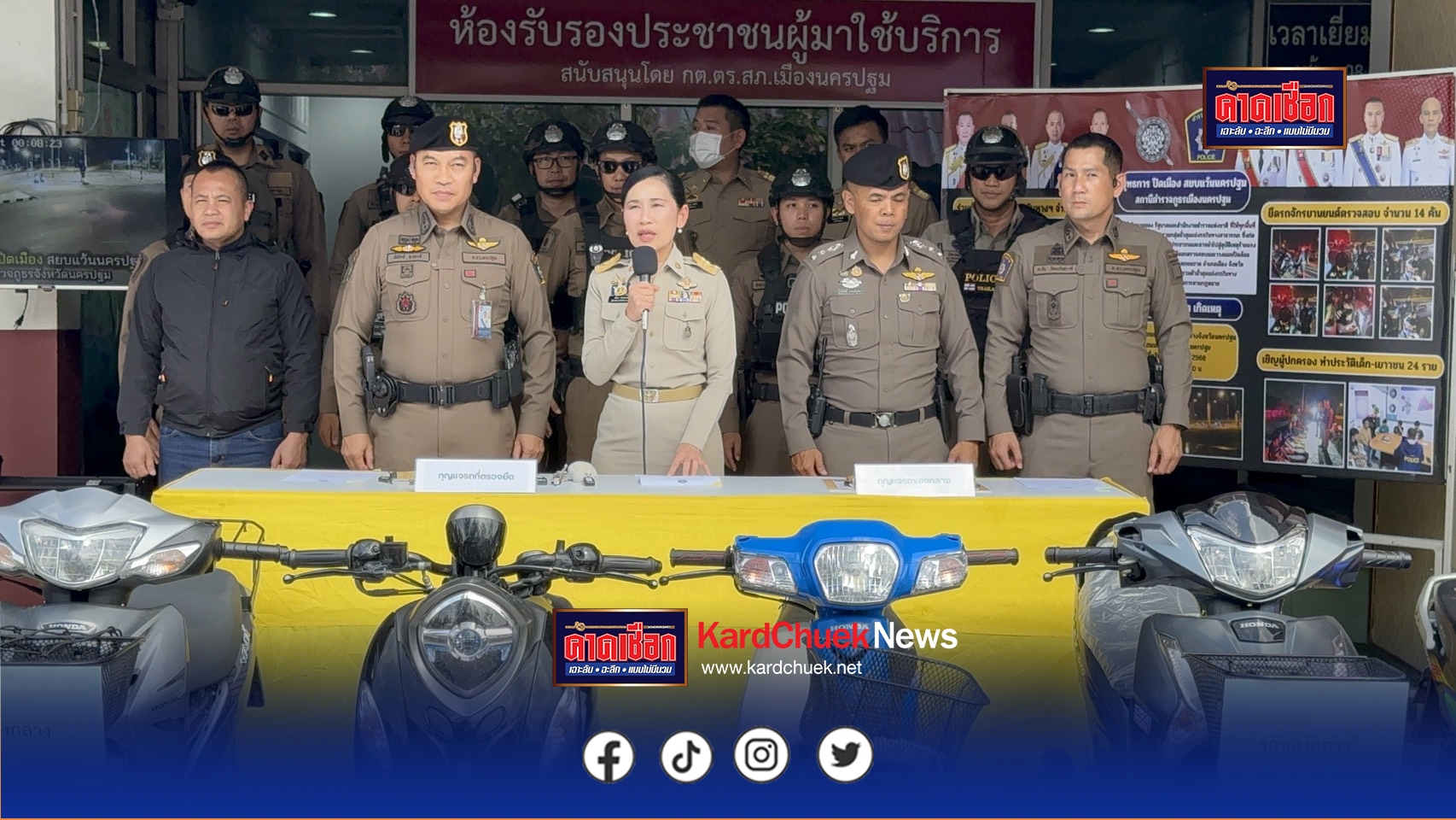 วันที่ 20 ตุลาคม 68 ที่สถานีตำรวจภูธรเมืองนครปฐม นางสาวอโรชา นันทมนตรี ผู้ว่าราชการจังหวัดนครปฐมพล.ต.ต.พิทักษ์ อุปพงษ์ ผบก.ภ.จว.นครปฐม พ.ต.อ.อชิรวัตติ์ ถาวรเจริญวัฒน์ ผกก.สภ.เมืองนครปฐม , พ.ต.ท.ตะวัน วัฒนรังสรรค์ รอง ผกก.ป.สภ.เมืองนครปฐม , พ.ต.ท.ฤทธิชัยปกรณ์ ดำรงค์อิทธิสกุล รอง ผกก.สส.สภ.เมืองนครปฐม ความรู้ด้วยเจ้าหน้าที่ชีวิตชุดจับกุม ได้ร่วมกันแถลงข่าวกวาดล้างเยาวชนขับขี่รถจักรยานยนต์กวนเมืองบริเวณหน้าศาลากลางจังหวัดนครปฐม ซึ่งเป็นปัญหาที่ประชาชน ได้ทำการร้องเรียนเข้ามาอย่างต่อเนื่อง และได้สร้างความรำคาญในช่วงยามค่ำคืนมาตลอดช่วงหลายสัปดาห์ที่ผ่านมา