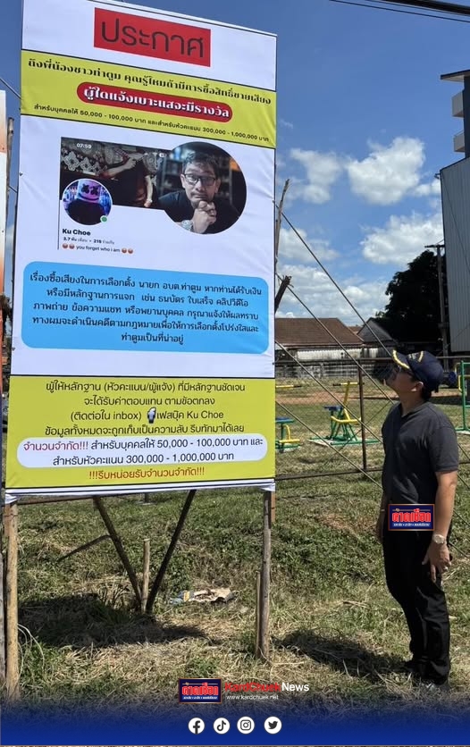 เมื่อวันที่ 25 ต.ค.68 ผู้สื่อข่าวรายงานจาก จ.ปราจีนบุรีพบความคืบหน้า นักธุรกิจหนุ่มย่าน ต.ท่าตูม อ0.ศรีมหาโพธิ จ.ปราจีนบุรีชื่อ “เสี่ยโจ้”ได้มีประกาศผ่านสื่อโซเชียลเฟสบุ๊ค ให้เงินรางวัลนำจับ 50,000 – 1,000,000 บาท หากพบหลักฐานซื้อสิทธิ-ขายเสียงแก่ผู้ให้หลักฐาน(หัวคะแนน/ผู้แจ้ง)ที่มีหลักฐานชัดเจน ศึกเลือกตั้งนายก อบต.ท่าตูม 26 ต.ค.นี้จะได้รับค่าตอบแทนตามข้อตกลง พบมีหลักฐานแจ้งคลิปภาพให้ทราบซื้อ-ขายเสียงก่อนคืนหมาหอนแล้วหัวละ1,000 บาทตามที่ได้นำเสนอรายละเอียดไปแล้วก่อนนี้ นั้น