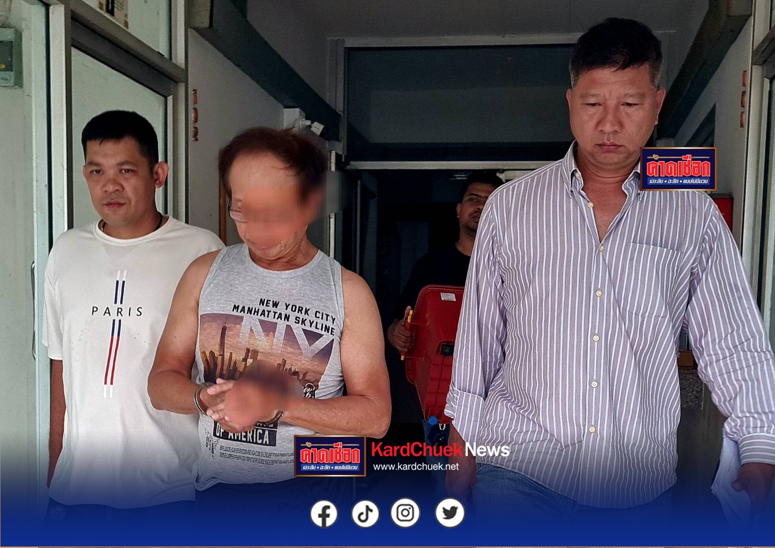 ,พ.ต.ท.ไกรฤกษ์ สิทธิโชติ สว.สส.สน.ท่าข้าม พร้อมกำลังฝ่ายสืบสวนจับกุมตัวนายสุรัตน์ ธัญญานนท์ อายุ 66 ปี