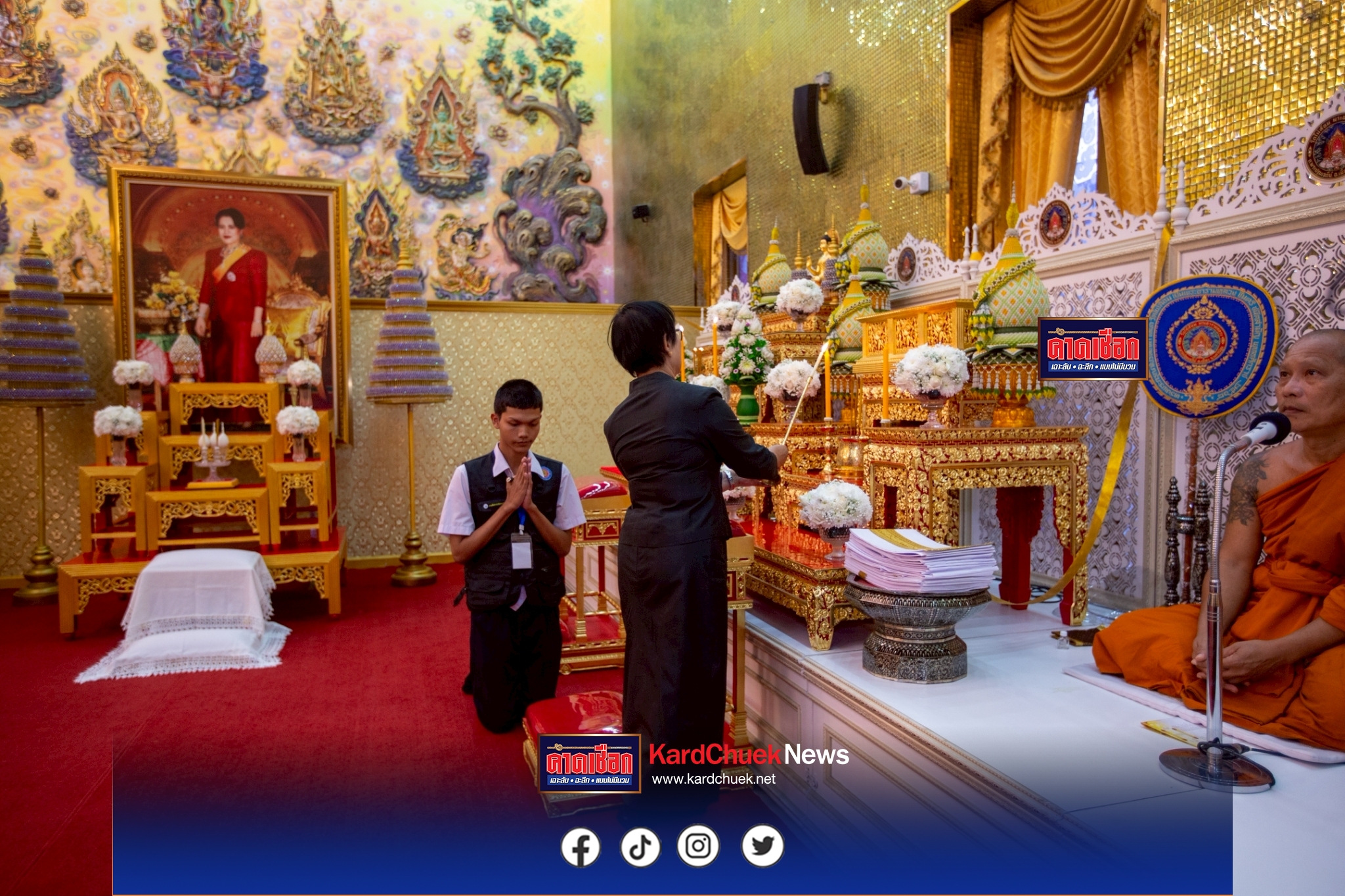 เมื่อวันที่ 27 ต.ค.2568 ตามที่ได้มีประกาศสํานักพระราชวัง เรื่อง สมเด็จพระนางเจ้าสิริกิติ์ พระบรมราชินีนาถ พระบรมราชชนนีพันปีหลวง สวรรคต ลงวันที่ 24 ต.ค.2568 นั้น วัดไผ่ล้อมพระอารามหลวง จังหวัดนครปฐม น้อมสำนึกในพระมหากรุณาธิคุณอันหาที่สุดมิได้ พระครูปลัดสิทธิวัฒน์ หลวงพี่น้ำฝน ผู้รักษาการแทนเจ้าอาวาสวัดไผ่ล้ออม พระอารามหลวง จังหวัดนครปฐม ได้กำหนดคณะสงฆ์วัดไผ่ล้อม พระอารามหลวง ประกอบพิธีสวดพระอภิธรรมพระบรมศพ เพื่ออุทิศถวายเป็นพระราชกุศลแด่ สมเด็จพระนางเจ้าสิริกิติ์ พระบรมราชินีนาถ พระบรมราชชนนีพันปีหลวง ณ วิหารพระพุทธเมตตาประทานพร วัดไผ่ล้อมพระอารามหลวง จังหวัดนครปฐม โดยมีคณะข้าราชการ ประชาชน นักเรียน นักศึกษา เข้าร่วมพิธีด้วยบรรยากาศแห่งความอาลัย