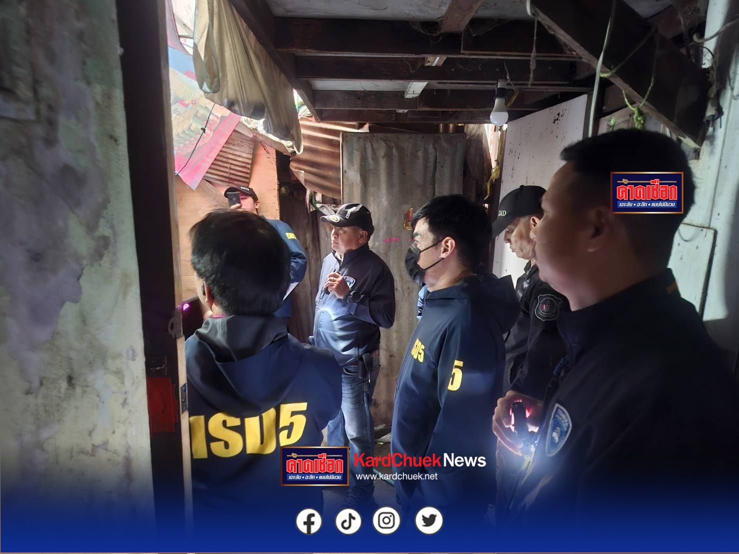 เมื่อวันที่ 28 ตุลาคม 2568 เจ้าหน้าที่ตำรวจชุดสืบสวน กองบังคับการตำรวจนครบาล 5 (สืบนครบาล 5) ร่วมกับกองบัญชาการปราบปรามยาเสพติด (บช.ปส.) และ สน.ท่าเรือ ลงพื้นที่ปิดล้อมตรวจค้นเป้าหมายยาเสพติดในพื้นที่ชุมชนพัฒนาใหม่ แขวงและเขตคลองเตย กรุงเทพมหานคร หลังออกหมายค้นจากศาลอาญาที่ 243/2568 และ 242/2568