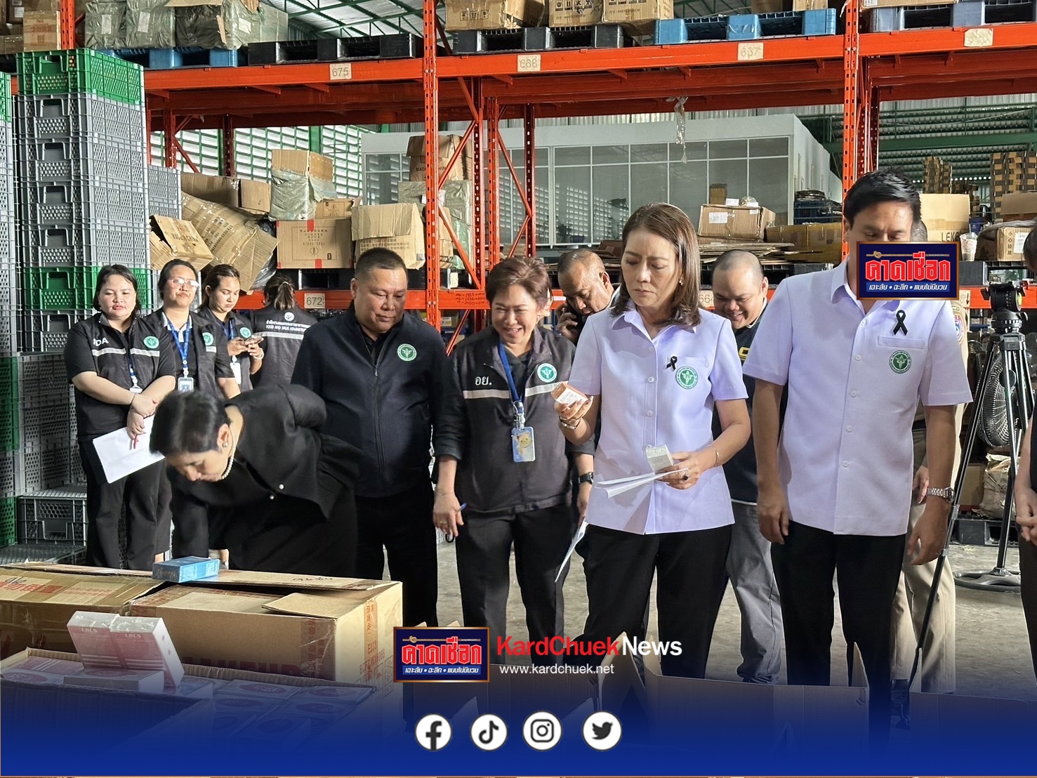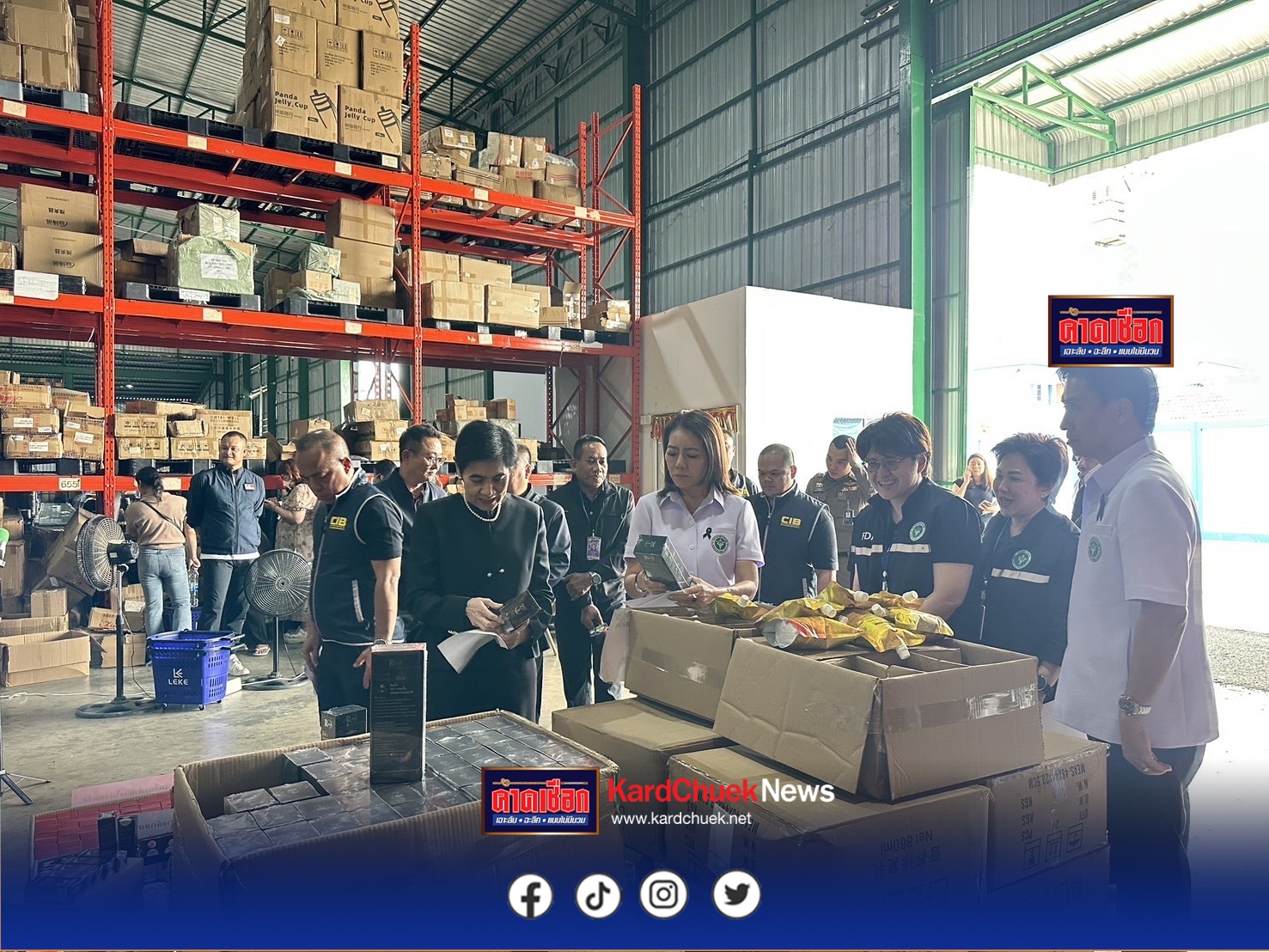 ต่อมาวันนี้ (30 ตุลาคม 2568) กระทรวงสาธารณสุข โดย สํานักงานคณะกรรมการอาหารและยา (อย.) สนธิกําลังร่วมกับตํารวจกองกํากับการ 4 กองบัญชาการตํารวจสอบสวนกลาง โดย กองบังคับการปราบปรามการ กระทําความผิดเกี่ยวกับการคุ้มครองผู้บริโภค (กก.4 บก.ปคบ.) นําหมายค้นศาลแขวงบางบอน เข้าตรวจค้นโกดัง เลขที่ 10 ในพื้นที่ แขวงบางบอนใต้ เขตบางบอน กรุงเทพมหานคร พบเป็นแหล่งพักและกระจายสินค้าประเภทเครื่องสําอาง ที่ลักลอบนําเข้ามาจากต่างประเทศ โดยไม่ได้รับอนุญาต จํานวนเกือบ 70,000 ชิ้น รวมมูลค่ากว่า 7 ล้านบาท