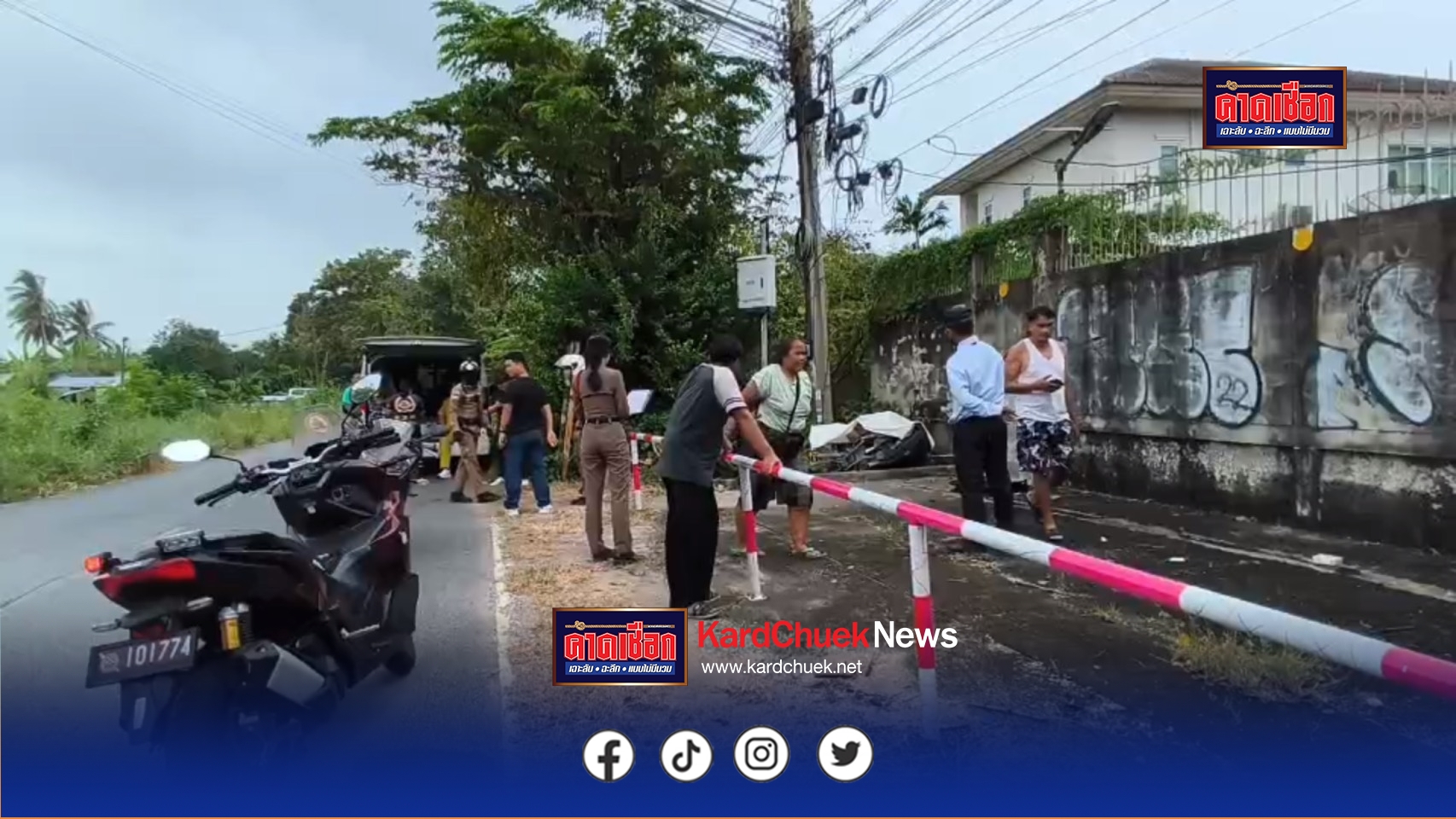 เมื่อวันที่ 30 ตุลาคม 2568 เจ้าหน้าที่ตำรวจ สภ.ชัยพฤกษ์ได้รับแจ้งเหตุ รถจยย.ชนกำแพงบ้านมีผู้เสียชีวิต 1 ราย เหตุเกิดบริเวณ บ้านเลขที่ 81หมู่ 2 ตำบลบางพลับ อำเภอปากเกร็ด จังหวัดนนทบุรี พร้อมด้วยแพทย์จากสถาบันนิติวิทยาศาสตร์และมูลนิธิร่วมกตัญญูรีบรุดตรวจสอบ
