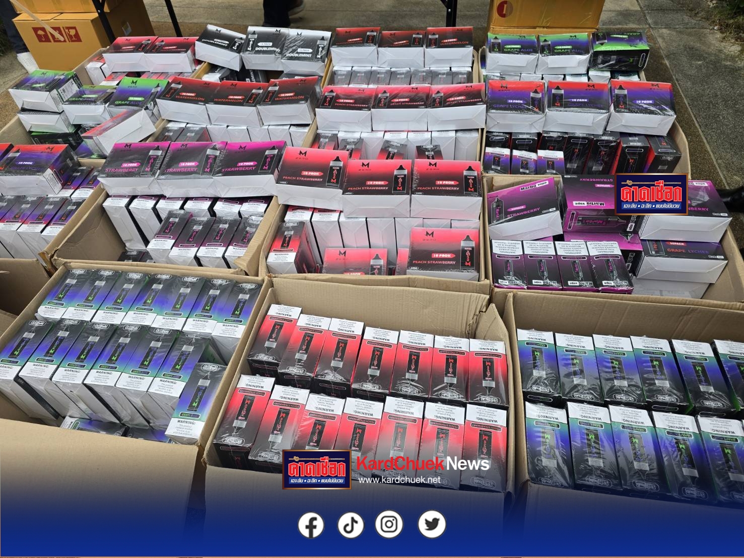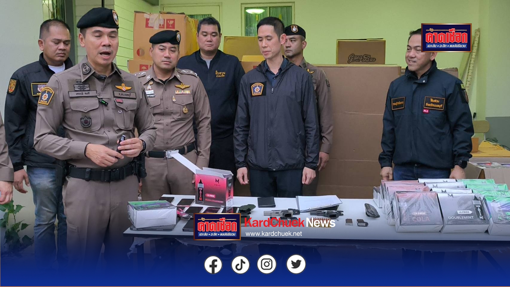 นนทบุรี ผบก.นนทบุรี นำกำลังบุกค้นบ้านหรู ยึดบุหรี่ไฟฟ้าล๊อตใหญ่สุดในเมืองนนท์ มูลค่ากว่า 24 ล้าน พบอาวุธปืน 2 กระบอก อ้างนำเข้าสินค้าจากพ่อค้าชาวจีน