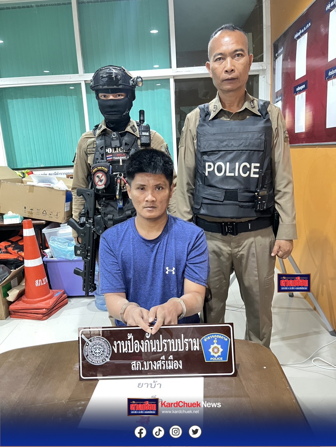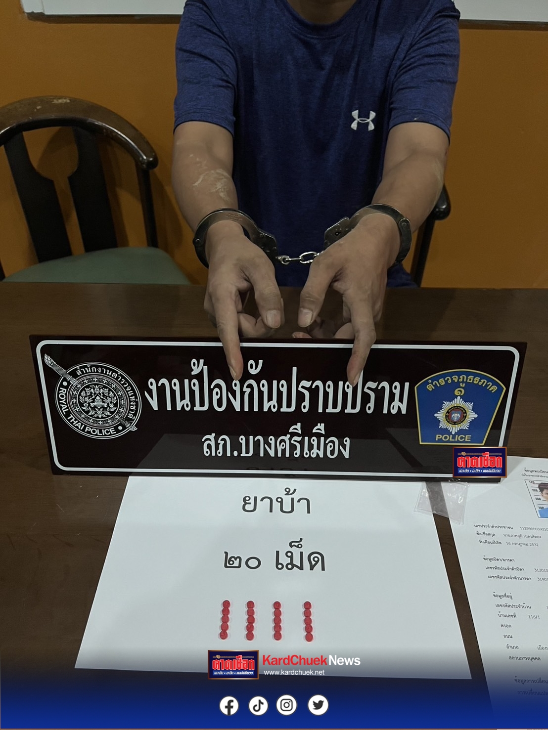 เบื้องต้นเจ้าหน้าที่ได้แจ้งข้อกล่าวหา “มียาเสพติดให้โทษประเภทที่ 1 (ยาบ้า) ไว้ในความครอบครองโดยผิดกฎหมาย” พร้อมแจ้งสิทธิตามกฎหมาย และควบคุมตัวส่งพนักงานสอบสวน สภ.บางศรีเมือง ดำเนินคดีตามกฎหมายต่อไป