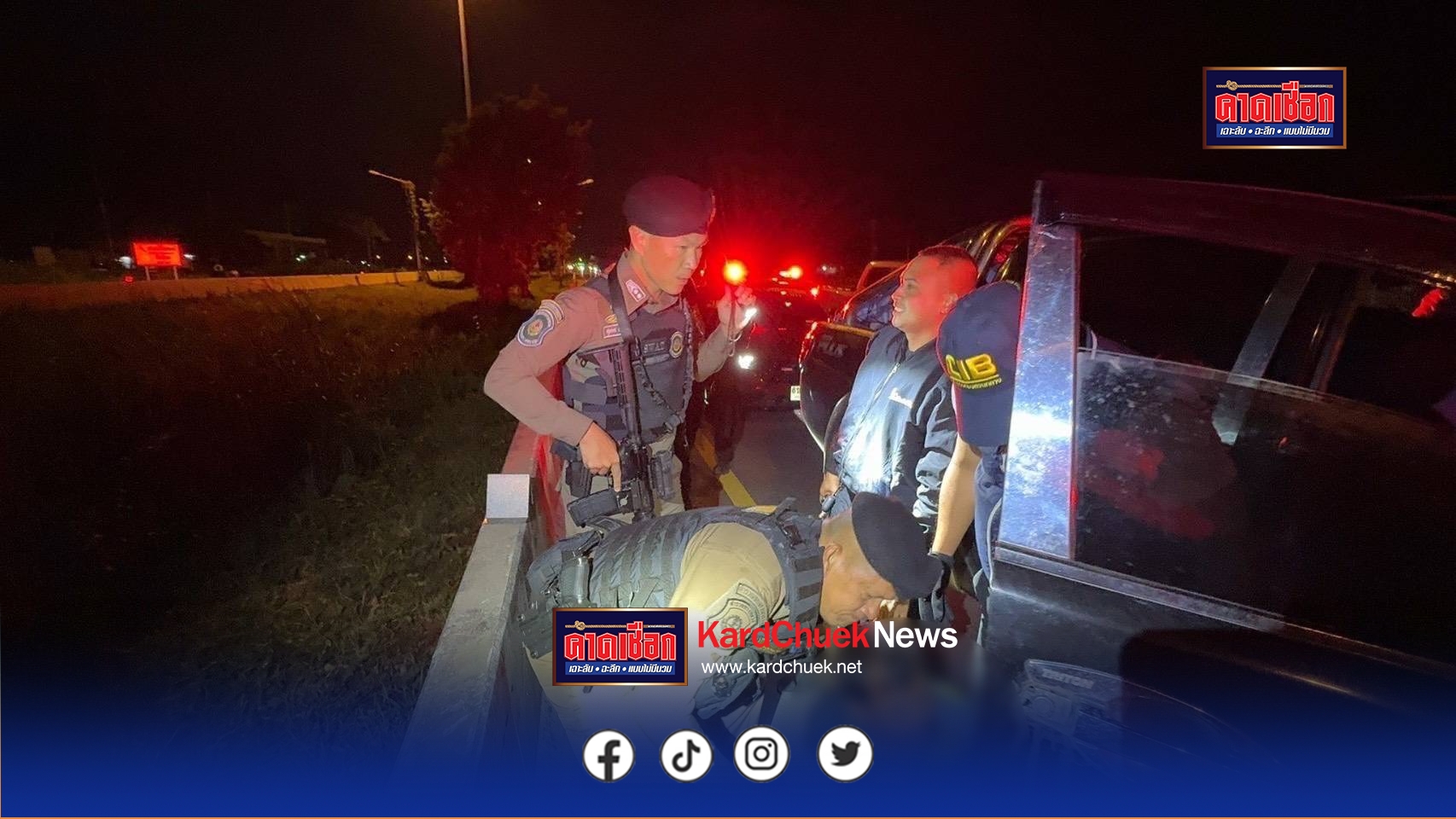 ตำรวจทางหลวงสกัดรถดัดแปลงขน 15 ต่างด้าวกลางถนนสายเอเชีย