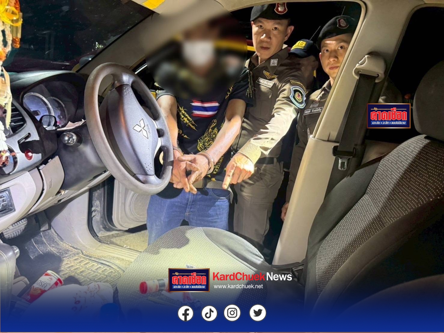 เจ้าหน้าที่ชุดจับกุม นำโดย พ.ต.ท.ศุภกร ตังคะประเสริฐ สวญ.ส.ทล.1กก.1 บก.ทล.,พ.ต.ท.อัครวุฒิ จันทร์เจริญ สว.ส.ทล.1 กก.1 บก.ทล., ร.ต.อ.เชาวลิต สีดำ, ร.ต.อ.คมสันติ์ วรทรัพย์ รอง สว.ส.ทล.1 กก.1 บก.ทล., ด.ต.วิชัย ตามสมัย, ด.ต.อรรถพล แก้วเพ็ชร, ด.ต.วิบูลย์ วุ่นหนู, จ.ส.ต.เจษฎา นววิศิษฏ์กุล และ ส.ต.ท.ปรเมศวร์ คำบาล ผบ.หมู่ ส.ทล.1 กก.1 บก.ทล.