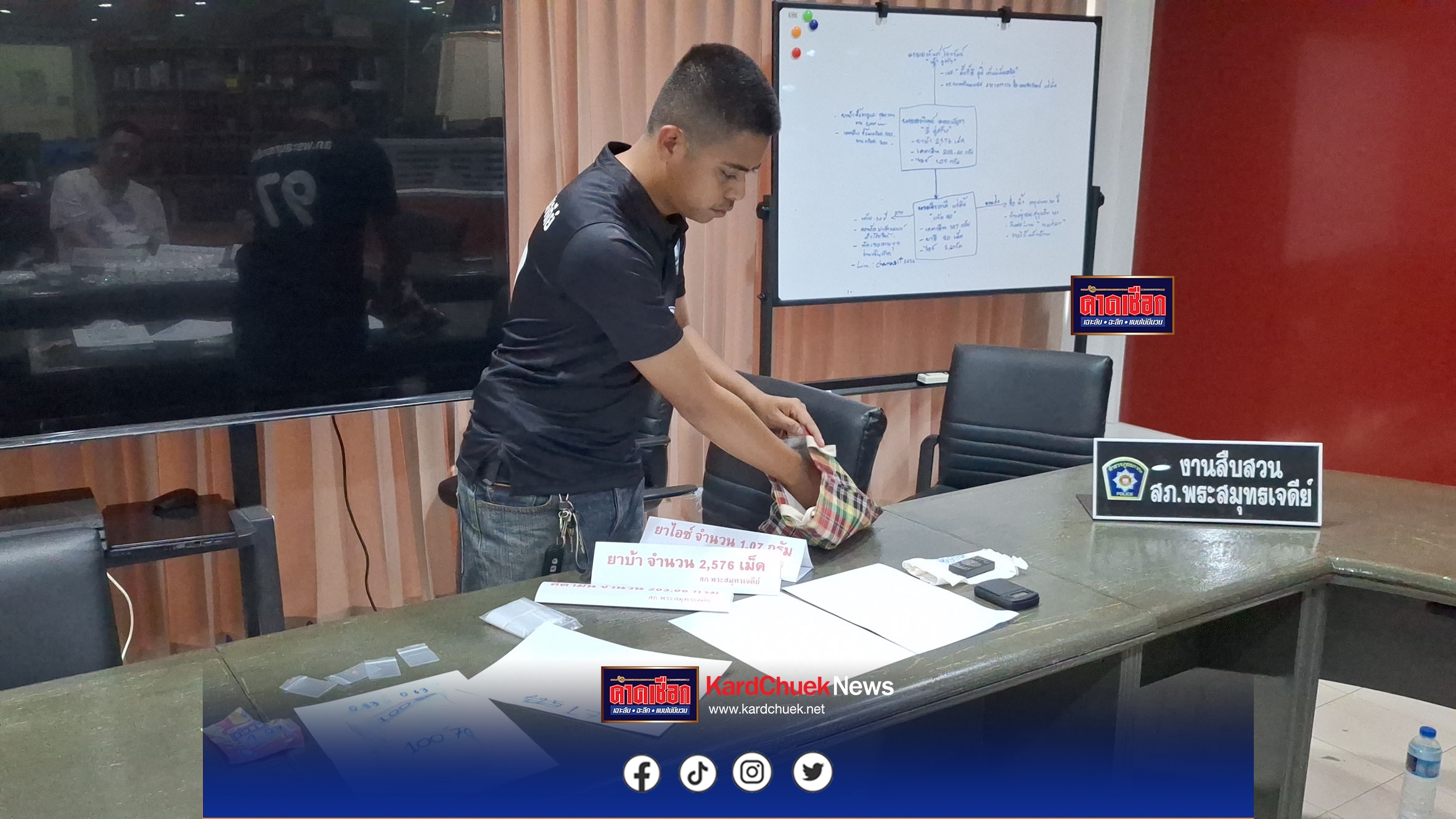 –เมื่อเวลา 15.00 น.วันที่ 7 พ.ย.68 พ.ต.อ.พจนกร กัญจินะ ผกก.สภ.พระสมุทรเจดีย์ จ.สมุทรปราการ พร้อมด้วย พ.ต.ท.ประยูร ปัตตุลี รอง ผกก.สส. พ.ต.ท.วีระพันธ์ บุญหนัก สว.สส. พร้อมเจ้าหน้าที่ตำรวจฝ่ายสืบสวน สภ.พระสมุทรเจดีย์ได้ร่วมกันจับกุมตัวผู้ต้องหาคือ นาย อาทิตย์ หรือ ลี้ คู่สร้าง-คู่สม อายุ 31 ปี พร้อมด้วยของกลาง ยาเสพติดให้โทษ ประเภทที่ 1 ( ยาบ้า ) รวมทั้งหมด จำนวน 2,576 เม็ด ยาเสพติดให้โทษ ประเภทที่ 1 ( ไอซ์ ) จำนวน 1.07 กรัม วัตถุออกฤทธิ์ต่อจิตและประสาท ประเภท 2 (เคตามีน) จำนวน 203.06 กรัมและยึดรถจักรยานยนต์ ยี่ห้อ ฮอนด้า รุ่นเวฟ สีน้ำเงิน-เทา หมายเลข 3 ข ฐ 6736. กทม.จำนวน 1 คัน ยึดไว้ตรวจสอบ โดยจับกุมตัวได้บริเวณห้องเช่า ซ.สุขสวัสดิ์ 78 ต.บางจาก อ.พระประแดง จ.สมุทรปราการ และจับกุม นาย จิรภาคี หรือ แจ็ค อายุ 31 ปี พร้อมด้วยของกลาง ยาเสพติดให้โทษ ประเภทที่ 1 ( ยาอี ) รวมทั้งหมด จำนวน 80 เม็ด วัตถุออกฤทธิ์ต่อจิตและประสาท ประเภท 2 (เคตามีน) จำนวน 200 กรัม ยาเสพติดให้โทษ ประเภทที่ 1 ( ไอซ์ ) จำนวน 2 กรัม โดยจับกุมที่ได้ บริเวณบ้านใน ต.บ้านคลองสวน อ.พระสมุทรเจดีย์ จ.สมุทรปราการ