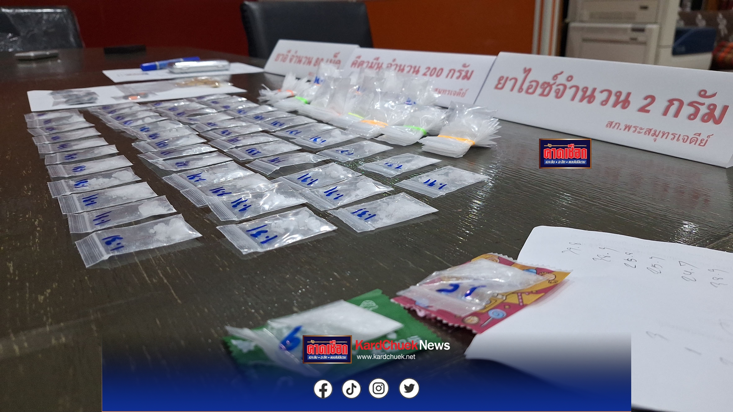 สมุทรปราการ-ตำรวจพระสมุทรเจดีย์บุกรวบ ลี้ คู่สร้าง-คู่สม พร้อมพวก ยึดยาเสพติดทั้ง ยาบ้า ยาไอซ์ ยาเค ยาเลิฟ ยาอีเพียบมูลค่าเกือบล้านบาท เตรียมแพ๊คใส่ถุงส่งขายสถานบันเทิงและกลุ่มวัยรุ่น
