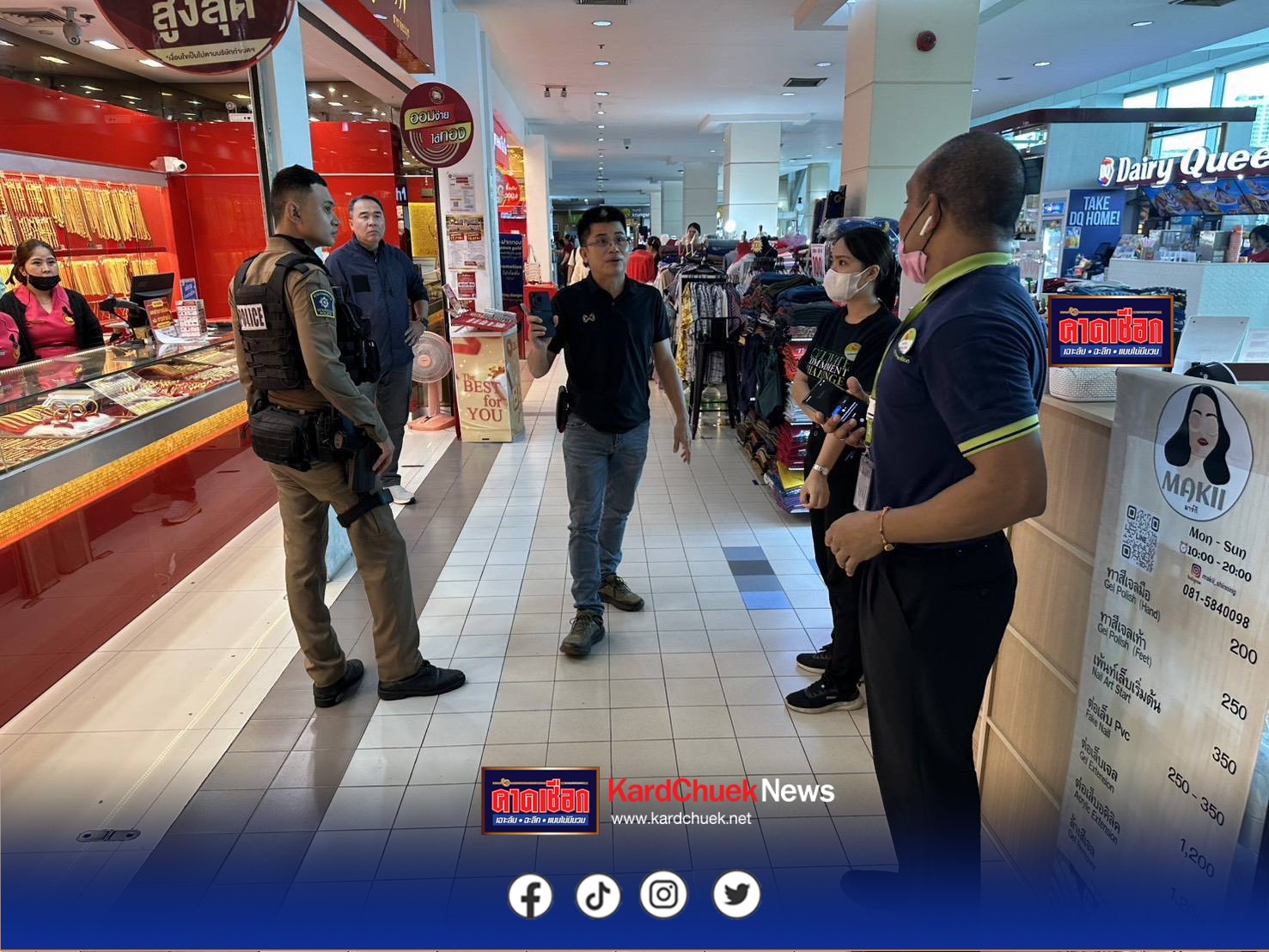 ที่เกิดเหตุพบ น.ส.ตรีนุช ลาทอง อายุ25ปี ลูกจ้างร้านทองดังกล่าวอยู่ในอาการตื่นตระหนก พร้อมกับให้การกับเจ้าหน้าที่ว่า ช่วงเวลา11:08 น. ได้มีชายรูปร่างผอมสูง หัวโล้นสักทั้งหัวและตัว สวมเสื้อแขนยาวสีเทา กางเกงขาสั้นรองเท้าแตะ ได้เข้ามาทำทำทีเป็นลูกค้าขอลองสวมแหวนวงนั้นวงนี้ และเมื่อเวลา 11:09 น. คนร้ายได้อาศัยจังหวะทุกคนในร้านเผลอวิ่งราวแหวนทองคำน้ำหนัก1บาทที่ใส่อยู่ในมือหลบหนีออกไปทางชั้น b1 ของห้างบิ๊กซี และได้มีเจ้าหน้าที่ รปภ.ของทางห้างฯได้วิ่งติดตามไป แต่คลาดกันหวุดหวิด