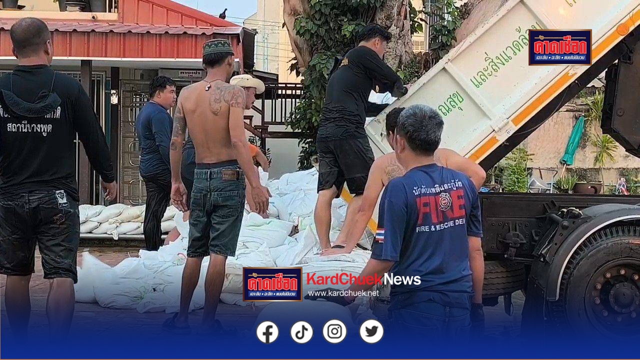 นนทบุรี ปากเกร็ดไม่ประมาท! เทศบาลเร่งเสริมแนวกั้นน้ำ รับมือการระบายน้ำจากเขื่อนเจ้าพระยา พร้อมดูแลชาวบ้าน 24 ชม.