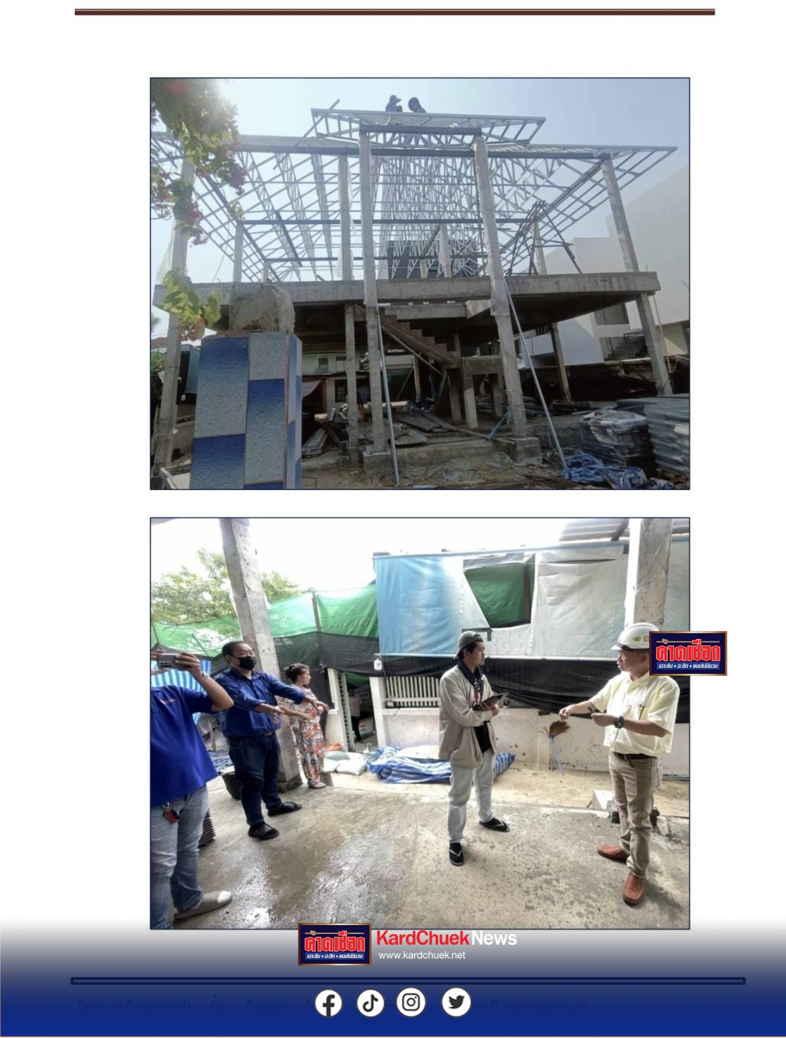 ต่อมา คุณแม่ของตนได้พบเจอปัญหาตัวโครงสร้างพื้นชั้นล่างไม่ได้ระดับ ซึ่งตนมีแพลนจะทำคอนเทนต์สร้างบ้านจึงถ่ายรูปไว้ค่อนข้างเยอะ เมื่อนำมาดูพบปัญหาในการก่อสร้างหลายจุด บริษัทฯอ้างว่าถ้าจะตรวจสอบต้องเป็น วย. เข้ามาตรวจสอบเท่านั้น ซึ่งตนได้ตกลงให้ วย. เข้ามาตรวจสอบและแจ้งกับบริษัทฯให้เข้ามาตรวจร่วมกันแต่ก็ไม่มา ซึ่งก็แค่รับรู้ รับทราบ แต่ไม่เข้ามาแก้ไข ตนจึงขอพักการก่อสร้างเพื่อตรวจสอบก่อน หลังจากนั้นก็เงียบหายไป โดยตนได้จ่ายเงินไปแล้วมากกว่า 3.5 ล้านบาท ตนจึงแจ้งยกเลิกสัญญาเนื่องจากบริษัทฯไม่สามารถทำตามสัญญาได้ และทราบภายหลังว่าบริษัทฯได้มีการยื่นปิดบริษัทฯแล้ว ทั้งที่ยังสร้างบ้านไม่เสร็จ