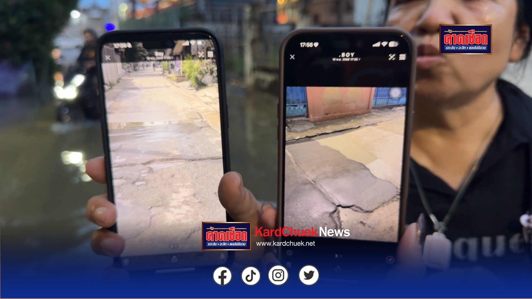 นนทบุรี ชุมชนวัดน้อยนอกเดือดร้อนถนนพังยับ ท่วมสูง 50 ซม. ยางมะตอยหลุดลอยเข้าบ้าน วอนหน่วยงานซ่อมถนนหลังน้ำลด