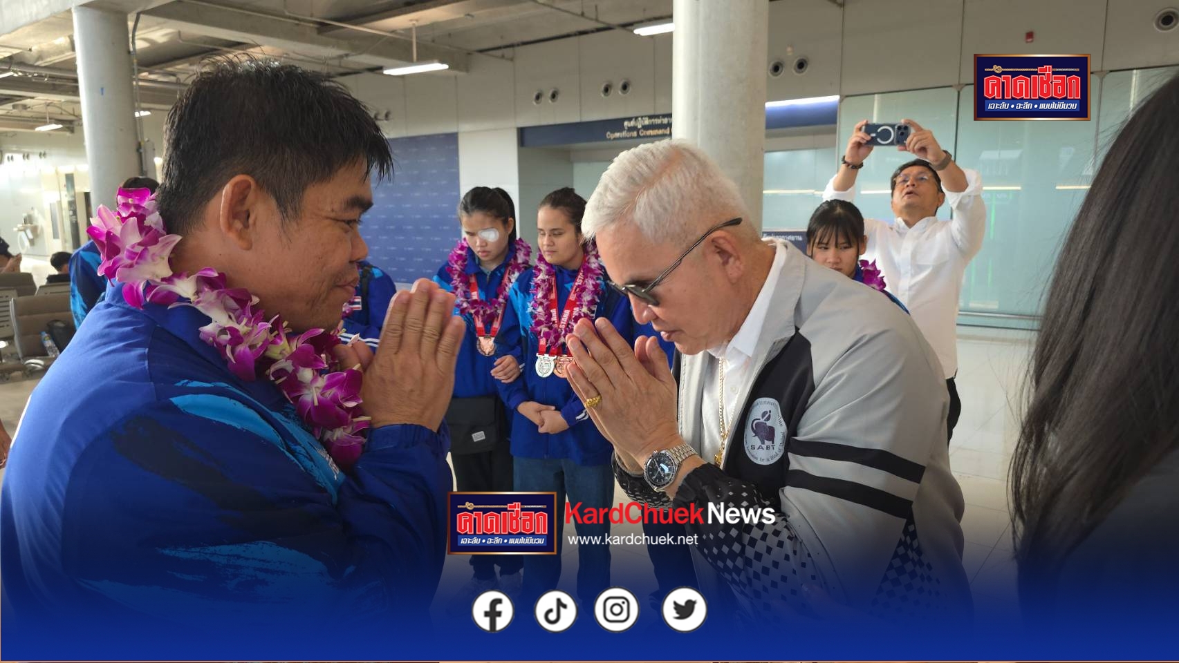 วันที่ 11 พฤศจิกายน 2568 เวลา 06.50 น. ที่ท่าอากาศยานสุวรรณภูมิ จังหวัดสมุทรปราการ นายอำนวย กลิ่นอยู่ นายกสมาคมกีฬาคนตาบอดแห่งประเทศไทย พร้อมคณะผู้บริหารสมาคม ต้อนรับทัพนักกีฬายูโดคนตาบอดทีมชาติไทยทั้งทีมชายและทีมหญิง ที่เดินทางกลับถึงประเทศไทยเป็นที่เรียบร้อย