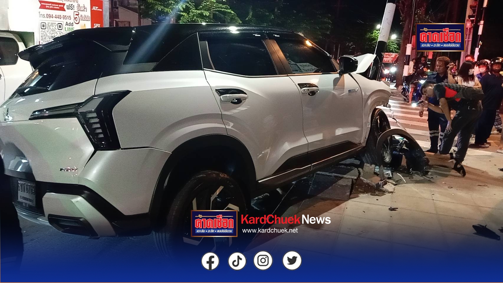 ที่สี่แยกทุ่งครุพบรถยนต์ไฟฟ้า 5 ประตู มิตซูบิชิ Xforce iHEV สีขาว ทะเบียน 6 ขฬ 6763 กรุงเทพมหานครมี น.ส.อภิญญา จิลำไพกูล อายุ31 ปี เป็นคนขับ ไม่ได้รับบาดเจ็บ