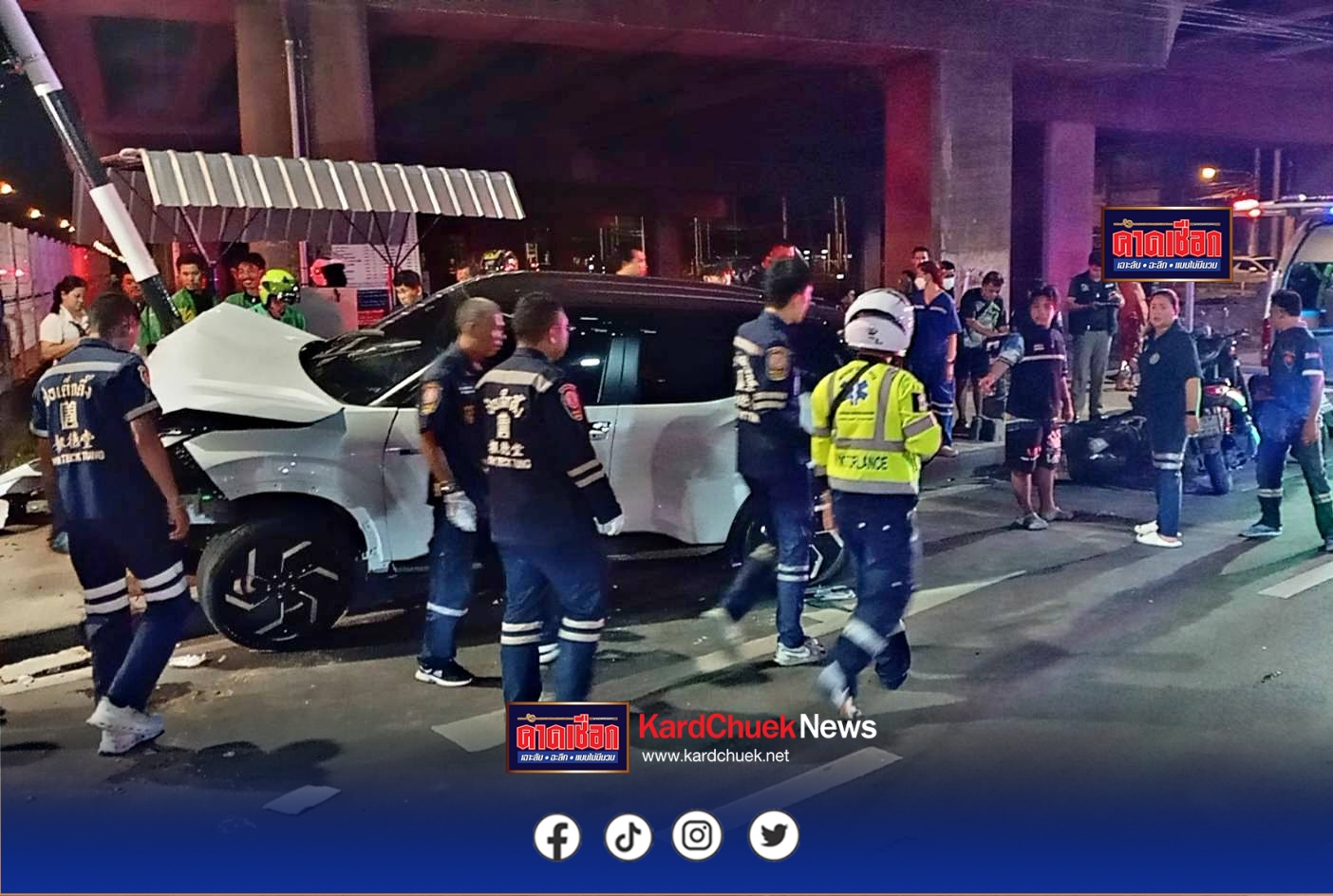 รอง สว.(สอบสวน)สน.ทุ่งครุ รับแจ้งมีอุบัติเหตุรถเฉี่ยวชนหลายคัน มีผู้ได้รับบาดเจ็บหลายราย และมีผู้ติดอยู่ใต้ท้องรถยนต์ เหตุเกิดบริเวณสี่แยกทุ่งครุ ถนนประชาอุทิศ แขวงและทุ่งครุ กทม. รุดไปตรวจสอบพร้อมอาสาสมัครมูลนิธิป่อเต็กตึ๊ง และอุปกรณ์เครื่องตัดถ่าง