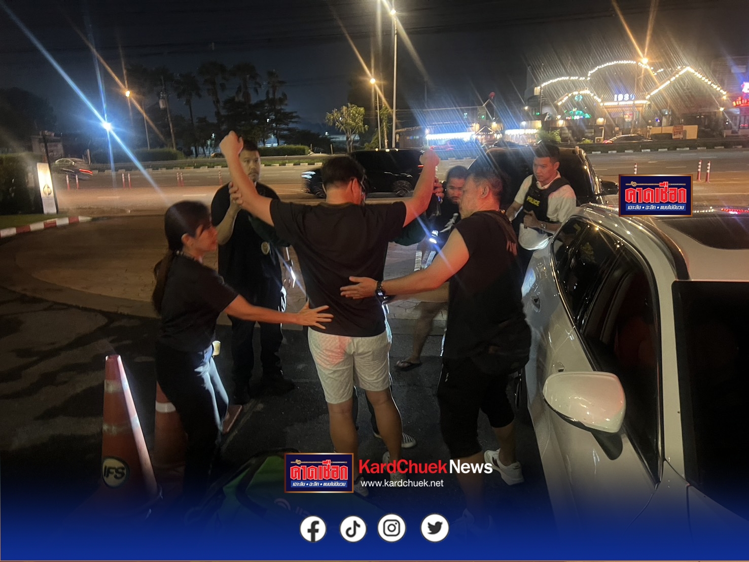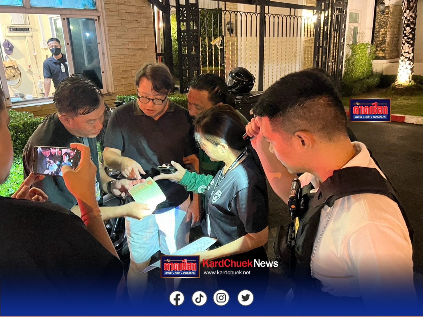 ปฏิบัติการจับกุมจีนเทานักต้มตุ๋นรายสำคัญของ สตม.ครั้งนี้ เปิดเผยขึ้นเมื่อช่วงกลางดึกวันที่ 12 พฤศจิกายน 2568 สืบเนื่องจากในช่วงเดือนตุลาคมที่ผ่านมา สำนักงานตรวจคนเข้าเมือง ได้รับข้อมูลจากประชาชนพลเมืองดี ซึ่งสังเกตเห็นพฤติกรรม ของชายชาวต่างชาติ รูปพรรณสัณฐานคล้ายคนจีน ซึ่งเข้ามาพักอาศัยในบ้านหรู มูลค่ากว่าแปดหลัก แต่กลับมีพฤติกรรมเก็บตัวไม่ออกไปไหนนานนับเดือน แต่กลับมีคนจีนคนอื่นๆเข้ามาพบเป็นระยะ จากข้อมูลดังกล่าว “บิ๊กปู” พล.ต.ท.ภาณุมาศ บุญญลักษม์ ผบช.สตม. ในฐานะแม่ทัพ ของหน่วยงานหลัก ที่มีหน้าที่บังคับใช้กฎหมายเกี่ยวกับคนร้ายข้ามชาติ และคนเข้าเมืองโดยผิดกฎหมาย ได้สั่งการมอบหมายให้ พล.ต.ต.ปรัชญา ประสานสุข และ พล.ต.ต.พันธนะ นุชนารถ รอง ผบช.สตม. ในการระดมชุดสืบสวนในการติดตามพฤติกรรม และเนื่องจากพื้นที่บริเวณที่ได้รับเบาะแสเป็นพื้นที่กรุงเทพมหานคร ซึ่งอยู่ภายใต้ความรับผิดชอบของ กองบังคับการตรวจคนเข้าเมือง 1 โดยมี พล.ต.ต.ประสาธน์ เขมะประสิทธิ์ ผบก.ตม.1, พ.ต.อ.ปฏิญญา จีรชนาสิน รอง ผบก.ตม.๑ ,พ.ต.อ.พลสิทธิ์ สุทธิอาจ ผกก.สืบสวน บก.ตม.1 จึงได้เรียกประชุมทีมสืบสวน นำโดย พ.ต.ท.สุริยะ พ่วงสมบัติ รอง ผกก.สืบสวน บก.ตม.1 และ พ.ต.ท.ธงไทย ไพเราะ สว.กก.สืบสวน บก.ตม.1 โดยวางแผงให้เจ้าหน้าที่ตำรวจปลอมเป็นพนักงานรักษาความปลอดภัยแฝงตัวไปอยู่บริเวณด้านนอกหมู่บ้านเพื่อสังเกตความเคลื่อนไหวเป็นเวลานานร่วมสัปดาห์ จนกระทั่งเวลาประมาณ 17.00 น. ของวันที่ 12 พฤศจิกายน 2568 เจ้าหน้าที่ตำรวจได้สังเกตเห็นรถยนต์ยี่ห้อวอลโว่ สีขาว ได้ขับเข้ามารับบุคคลต่างชาติเป้าหมายออกไปนอกหมู่บ้านเป็นครั้งแรกนับตั้งแต่เฝ้าสังเกตการณ์มา จึงได้รายงานผู้บังคับบัญชาทราบ เพื่อเรียกชุดสืบสวน วางกำลังดักซุ่มตามจุดต่างๆในพื้นที่ ที่เชื่อว่าเป้าหมายน่าจะขับรถผ่าน กว่า 4 ชั่วโมงนับจากได้เบาะแส ความพยายามของชุดสืบสวนก็เป็นผล เมื่อหนึ่งในเจ้าหน้าที่นอกเครื่องแบบ พบรถยนต์ยี่ห้อวอลโว่ สีขาว เปิดไฟเลี้ยวเตรียมจะเข้ามาที่หมู่บ้านหรู เจ้าหน้าที่จึงนำรถตำรวจเข้าปิดท้าย ก่อนลงมาแสดงตัว เป็นเจ้าหน้าที่ตำรวจ โดยแสดงบัตรข้าราชการให้ดู เรียกให้ลงจากรถ ขอตรวจสอบเอกสารประจำตัว ภายในรถพบเป้าหมายทราบชื่อ จากหนังสือเดินทางคือ นายอู๋ อายุ 40 ปี สัญชาติวานูอาตู พบตราประทับเดินทางเข้ามาในราชอาณาจักรล่าสุดตั้งแต่เมื่อช่วงกลางปีที่แล้ว การอนุญาตสิ้นสุดลงแล้ว เจ้าหน้าที่ชุดจับกุมจึงแจ้งข้อกล่าวหาให้ทราบเบื้องต้นว่า “เป็นคนต่างด้าวอยู่ในราชอาณาจักรโดยการอนุญาตส
