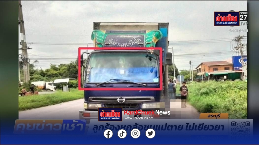 วันที่14 พ.ย. 68 นางสาว ธนิกานต์ แก้วโชติ อายุ35ปี ได้ส่งคลิปกล้องวงจรปิด บริเวณสี่แยกไฟแดงวังม่วง อ.วังม่วง จ.สระบุรี มาร้องทีมข่าว ขณะที่แม่ตนชื่อนางสุนิสา แก้วโชติ อายุ70 ปี ขี่รถจักรยานยนต์ กำลังกลับบ้าน แต่ถูกรถหกล้อตู้ทึบชนท้าย และล้อทับร่างแม่ตนสภาพศพขาด2ท่อน เสียชีวิตและยังลากร่างแม่ตนไปไกลกว่า10เมตร นางสาว ธนิกานต์ ต้องมาร้องทุกข์ ไม่ได้รับความเป็นธรรมในคดี ภาพวงจรปิดจากสี่แยกเกิดขึ้น เมื่อวันที่ 9 กันยายนที่ผ่านมา จากภาพจะเห็นรถจักรยานยนต์เลี้ยวซ้ายผ่านสี่แยกไป จากนั้นรถหกล้อตู้ทึบที่ตามหลังมาก็ชนท้ายเต็ม ๆ แล้วลากศพแม่ตนไปต่อถึงจะหยุดรถ