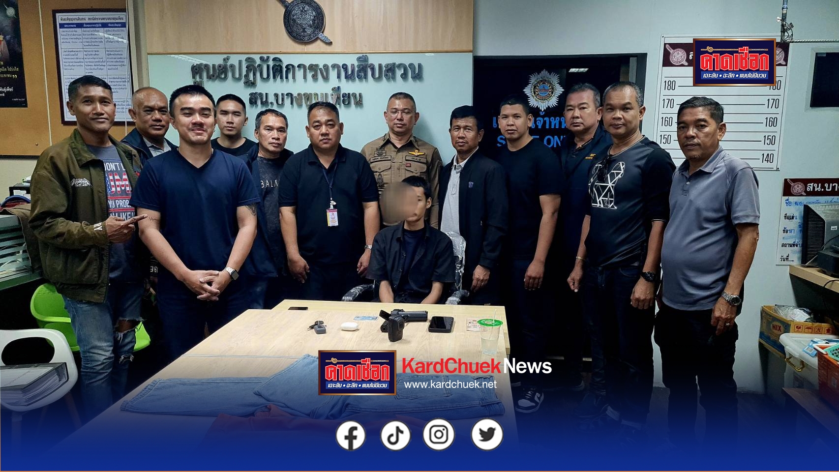 สืบขุนเทียนรวบหนุ่มพ่อค้าเสื้อมือสองควงปืนปลอมจี้เด็กปั๊มชิงเงิน กว่า 3 พันบาท เปลี่ยนชุดใส่อำพรางหนี สารภาพหาเงินจ่ายค่าไฟ