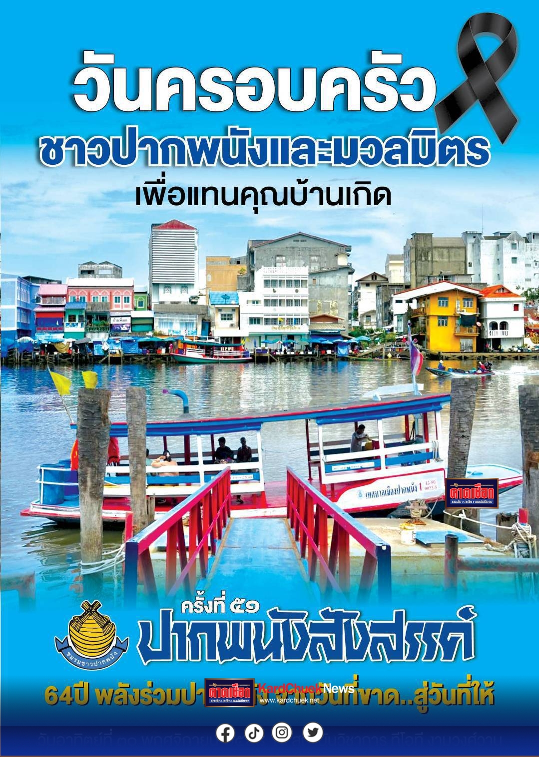 มูลนิธิชมรมชาวปากพนัง จัดงานวันครอบครัวชาวปากพนังและมวลมิตร”ปากพนังสังสรรค์”ครั้งที่ 51 ประจำปี2568 เพื่อระดมทุนการศึกษาให้กับนักเรียน ในวันอาทิตย์ที่ 30 พฤศจิกายน 2568 ที่สถาบันวิชาการทีโอที งามวงศ์วาน 17 นนทบุรี เวลา 11.00-16.00 น.
