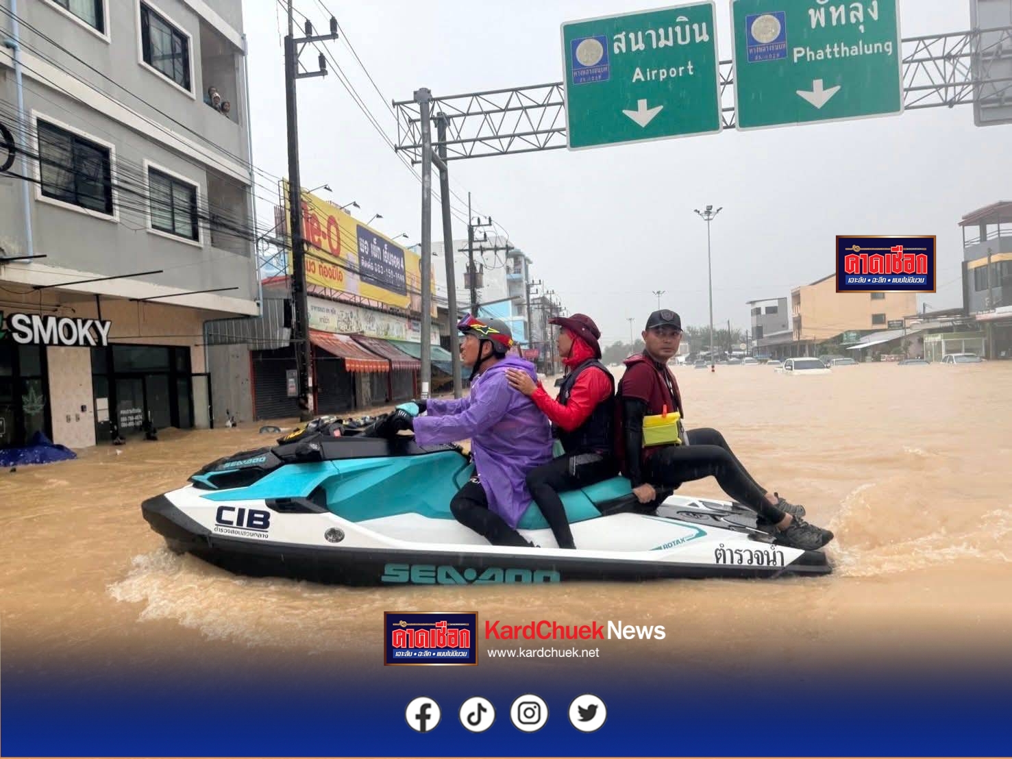 “ตำรวจน้ำสงขลา” เข้าช่วยอพยพประชาชน น้ำท่วมหาดใหญ่ ฝ่าน้ำเข้าจุดเสี่ยงวิกฤต ช่วย 100 ชีวิต พาทารกน้อยพ้นภัย นำร่างผู้เสียชีวิตออกจากพื้นที่น้ำท่วม