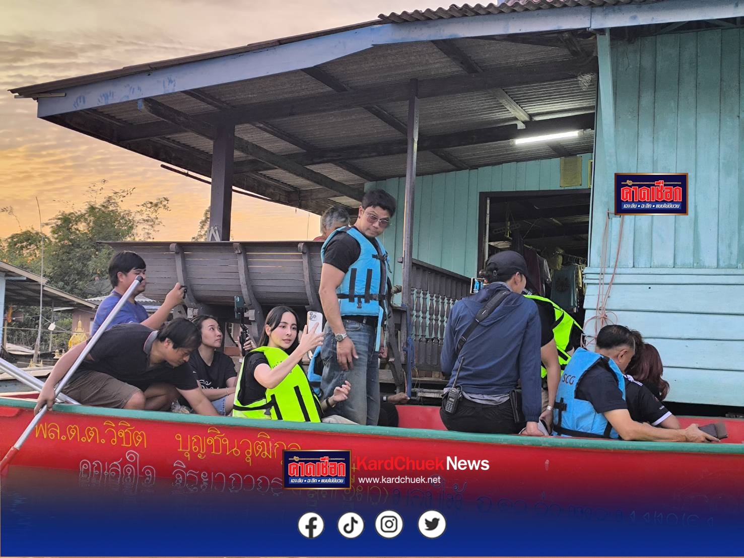 จากนั้นมูลนิธิอีจัน ได้นำศิลปิน และผู้ร่วมคณะนำสิ่งของ อาหาร และเครื่องใช้ที่จำเป็นที่ได้เตรียมมาส่งมอบให้กับตัวแทนของแต่ละครอบครัว โดยได้มีการลงเรือท้องแบน นำการช่วยเหลือไปส่งให้ถึงหน้าบ้านที่ยังคงจมแช่อยู่ในผืนน้ำ ที่ไม่มีไฟฟ้า น้ำปะปาใช้ ซึ่งเป็นส่วนหนึ่งจากหลายครั้งที่ได้มีการส่งต่อกำลังใจ ส่งความห่วงใจถึงพี่น้องคนไทยที่ไม่ทอดทิ้งกัน โดยพบว่านอกเหนือจากการไม่สะดวกสบายในการใช้ห้องน้ำ การประกอบอาหารรับประทาน ยังคงต้องมีการดูแลผู้ป่วยติดเตียงและผู้สูงวัยและเด็กอ่อน อยู่ในบ้านที่ขาดเครื่องอำนวยความสะดวกใดใด โดยจะมีการลงพื้นที่อย่างต่อเนื่องเพื่อประสานการร่วมมือในการแก้ปัญหาจนกว่าสถานการณ์จะคลี่คลาย
