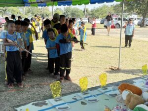 คุณกวินพงศ์ จันทร์สว่าง เปิดเผยต่อว่า ส่วนในปีนี้ก็เช่นกัน เรารวมตัวกันมีการประสานกันเรื่องสถานที่เลยเลือกมาที่โรงเรียนบ้านเขื่อนลั่น หมู่ 1 ตำบลตะโกทอง อำเภอซับใหญ่ จังหวัดชัยภูมิ เป็นโรงเรียนขนาดเล็กปานกลาง มีชั้น อนุบาล1- ประถมปีที่ 6 มีนักเรียน รวมกัน 76 คน ชาย 40 คน หญิง 36 คน มีบุคลากร ทั้งหมด 10 ท่าน