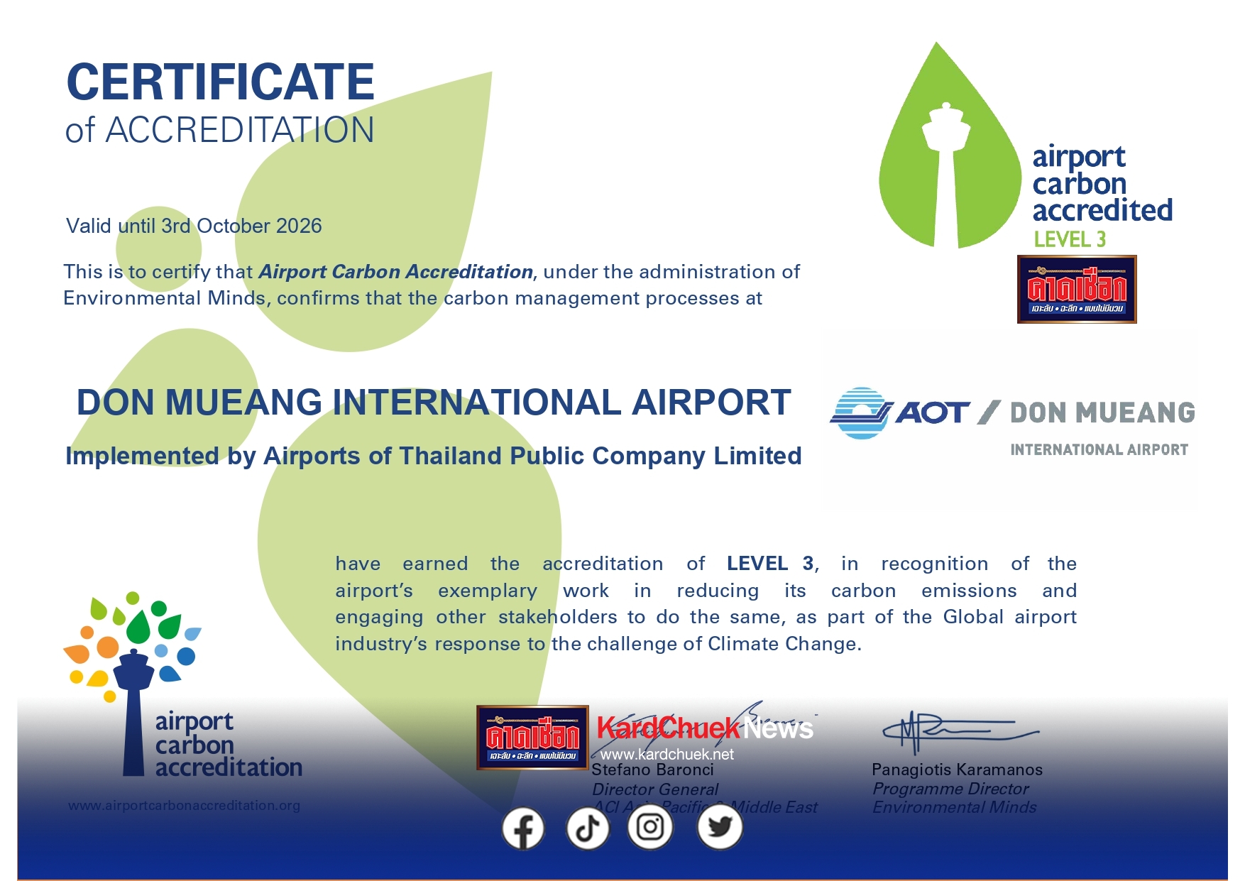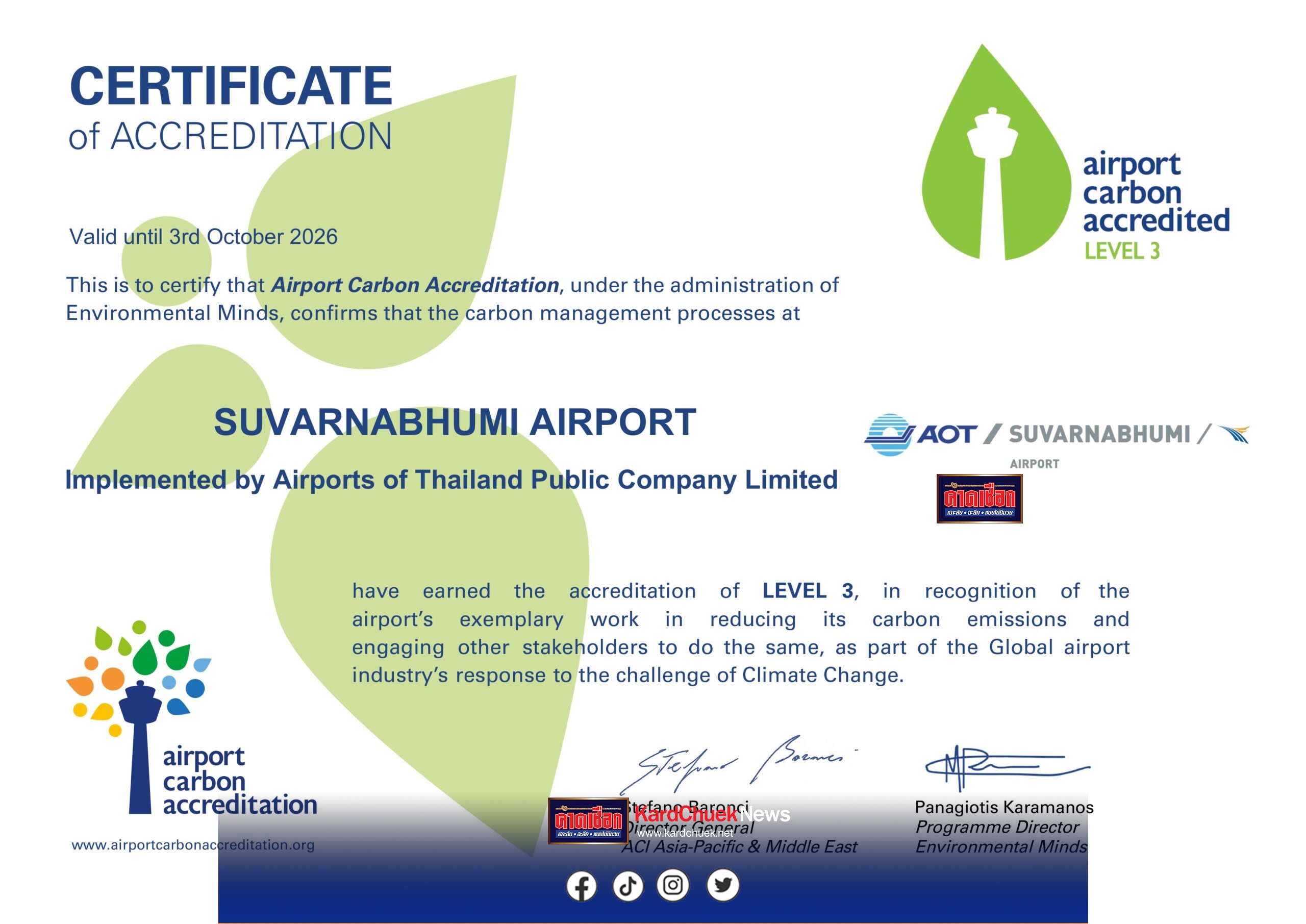 สมุทรปราการ AOT สร้างความยั่งยืนด้านสิ่งแวดล้อม สนามบินทุกแห่งประเมินและจัดการก๊าซเรือนกระจกครบวงจร
