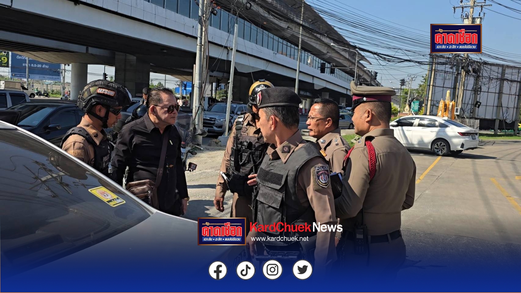จากการตรวจสอบเบื้องต้นที่เกิดเหตุ พบรถยนต์เก๋งส่วนบุคคล ยี่ห้อโตโยต้า รุ่นโคโรลล่า อัลติส สีบรอนซ์ ทะเบียน ชง 5297 กรุงเทพมหานคร จอดอยู่บริเวณผิวจราจรไม่ชิดไหล่ทาง ใกล้กันมีรถจักรยานยนต์แบบบิ๊กไบค์ ยี่ห้อฮอนด้า รุ่น CB 500X ทะเบียน 8 กธ 916 กรุงเทพมหานคร จอดอยู่ริมถนนชิดทางเท้า ทราบชื่อผู้ได้รับบาดเจ็บ คือ นายบดินทร์ สานติสุขรัตน์ อายุ 36 ปี ชาวจังหวัดนนทบุรี ถูกยิงเข้าบริเวณแขนซ้าย 1 นัด เจ้าหน้าที่กู้ภัยและรถพยาบาลได้รีบนำตัวส่งโรงพยาบาลเพื่อทำการรักษา