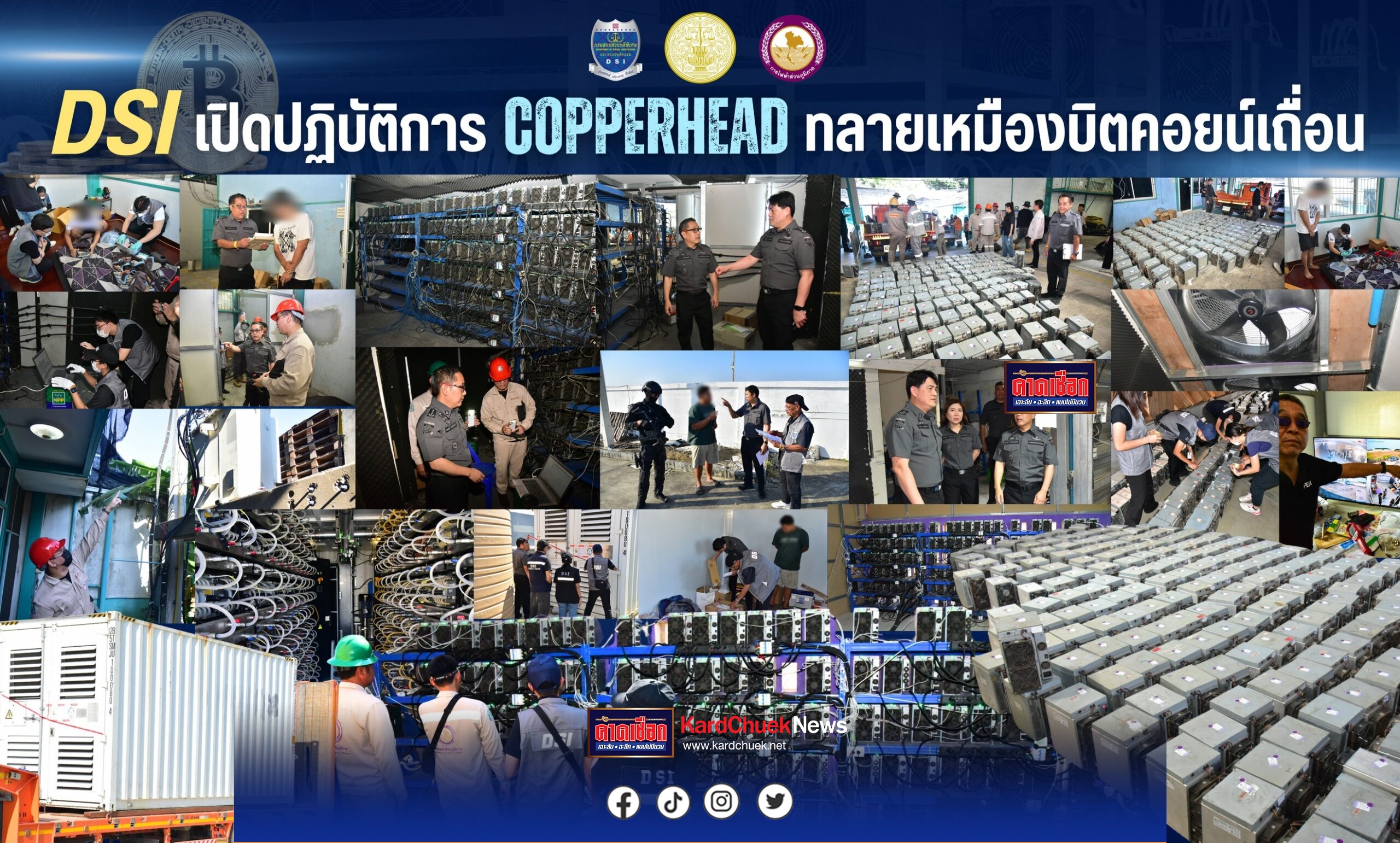 DSI สนธิกำลังร่วมกับ กฟภ. เปิดปฏิบัติการ ‘Operation Copperhead’ ทลายเหมืองบิตคอยน์เถื่อน พื้นที่สมุทรสาคร-อุทัยธานี เชื่อมโยงขบวนการจีนเทา – พม่า ยึดเครื่องขุด 3,642 เครื่อง ทำรัฐเสียหายกว่า 3 พันล้านบาท