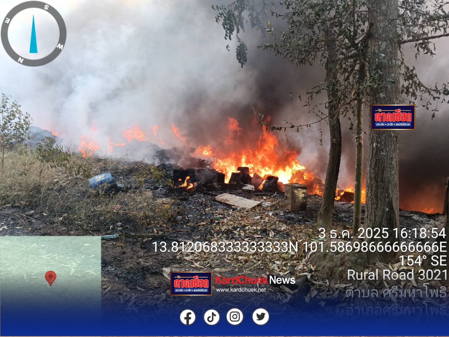 ผู้สื่อข่าวได้ลงพื้นที่ เกิดเหตุไฟไหม้บ่อขยะ ซึ่งมีผู้ที่ลักลอบนำขยะมาทิ้งในพื้นที่บ่อลูกรัง ตำบลศรีมหาโพธิ อำเภอศรีมหาโพธิ จังหวัดปราจีนบุรีทราบเบื้องต้นไฟได้โหมลุกไหม้เมื่อช่วงเวลา 15:00 น ที่ผ่านมา พบว่าเป็นบ่อขยะซึ่งเป็นบ่อลูกรังเก่าเนื้อที่กว่า 5ไร่ และพบรถดับเพลิงขององค์กรปกครองส่วนท้องถิ่น (อปท.) อาทิ องค์การบริหารส่วนตำบลศรีมหาโพธิ(อบต.) ทต.กรอกสมบูรณ์ อบต.บ้านทาม อบต.หนองโพรง อบต.หัวหว้า ทต.ศรีมหาโพธ บจก.สวนอุตสาหกรรม 304 และ กู้ภัยสว่างบำเพ็ญธรรมสถานเขตอำเภอศรีมหาโพธิ ให้การสนับสนุนรถไฟฟ้าส่องสว่างและพื้นที่ใกล้เคียง รวมรถดับเพลิง จำนวน 7 คัน กำลังร่วมบูรณาดับเพลิงอย่างเร่งด่วน เนื่องจากมีกลุ่มควันสีดำหวยพุ่งขึ้นสู่ท้องฟ้าเป็นวงกว้างท่ามกลางสภาพอากาศแห้งในต้นหนาวและลมหนาว
