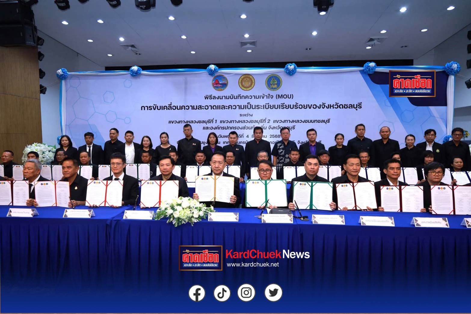 ชลบุรีจับมือครั้งใหญ่!”ผู้ว่าฯนริศ” นำทัพ 35 องค์กร ลงนาม MOU ขับเคลื่อนเมืองสะอาด-เป็นระเบียบ บูมท่องเที่ยว-เพิ่มรายได้นายนริศ นิรามัยวงศ์ ผู้ว่าราชการจังหวัดชลบุรี ได้เป็นประธานในพิธีลงนามบันทึกความเข้าใจ (MOU) ครั้งสำคัญ เพื่อผนึกกำลังขับเคลื่อนความสะอาดและความเป็นระเบียบเรียบร้อยของจังหวัดชลบุรี ให้เป็นไปตามนโยบายหลักของผู้ว่าฯ โดยมี นายพงศ์ธสิษฐ์ ปิจนันท์ รองผู้ว่าราชการจังหวัดชลบุรี, นายวิทยา คุณปลื้ม นายกองค์การบริหารส่วนจังหวัดชลบุรี พร้อมด้วยหัวหน้าส่วนราชการและผู้บริหารท้องถิ่นร่วมเป็นสักขีพยานอย่างพร้อมเพรียง