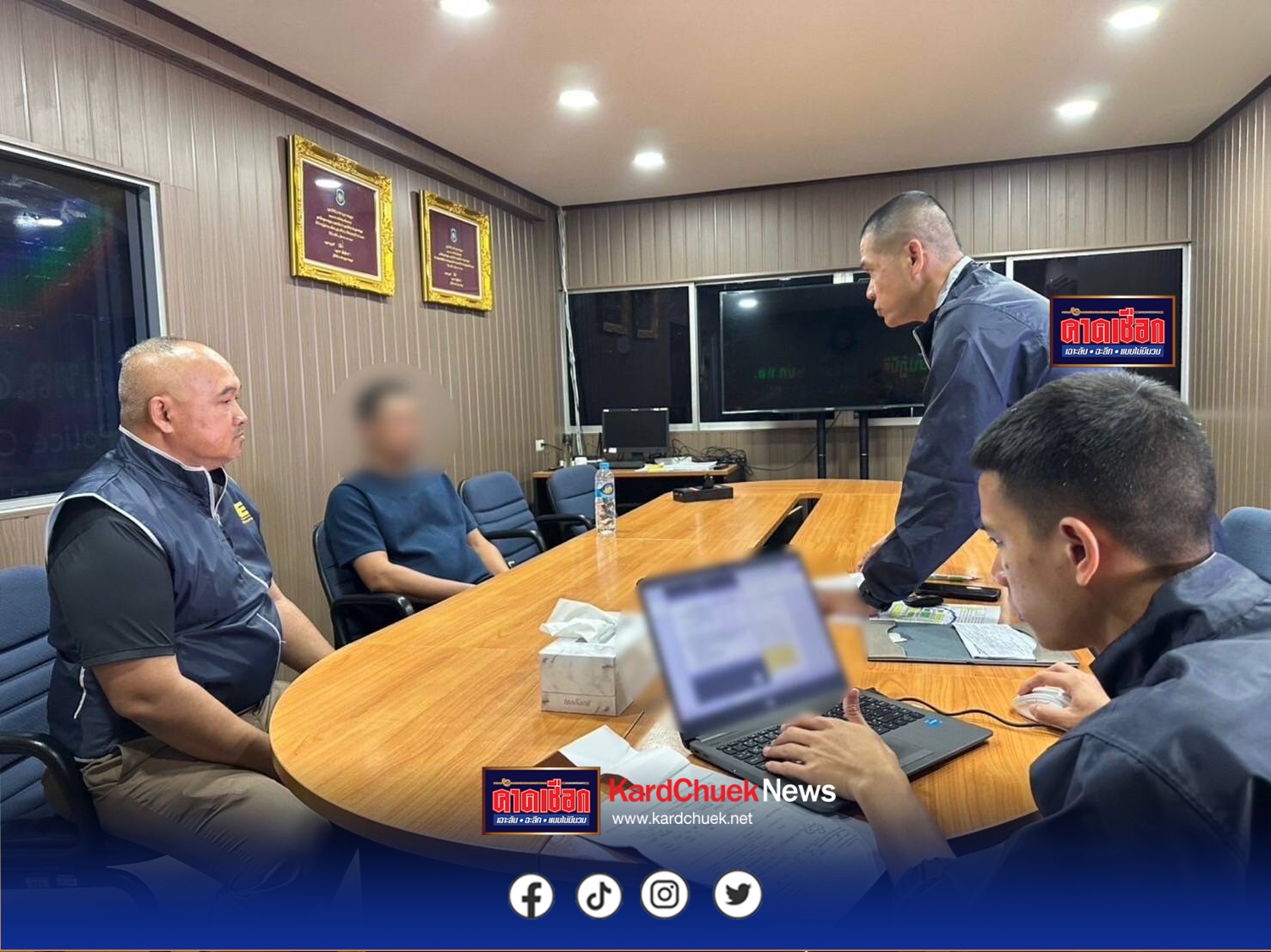 เจ้าหน้าที่ชุดจับกุม นำโดย ร.ต.ท.นิทัศน์ เทศน้อย, ร.ต.ต.เวช บุญเทียน, ร.ต.ต.วิลัย ทองวงสา รอง สว.(ป.) ส.ทล.1 กก.6 บก.ทล., ด.ต.ติณณภพ พรหมจารีย์, ส.ต.อ.ศุภมิตร โมฬีชาติ ผบ.หมู่ ส.ทล.1 กก.6 บก.ทล.