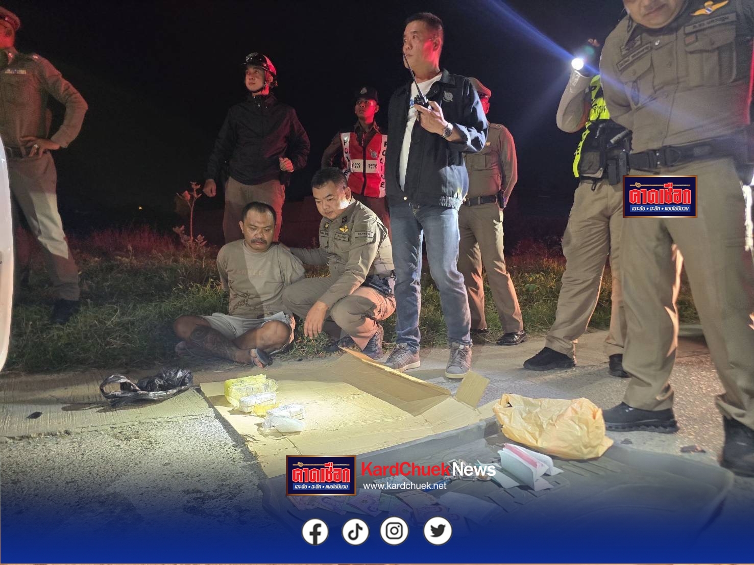 จว.นครปฐม โดยนายสมชายฯ วางยาเสพติดไว้ข้างทาง เมื่อผู้ต้องหาไปรับยาเสพติดที่จุดดังกล่าว แล้ววางเงินสดไว้ จำนวน 65,000 บาทไว้จุดที่วางยาบ้า และนำยาเสพติดไปซุกซ่อนไว้ที่กอกล้วยบ้านนายนิว ไม่ทราบชื่อสกุลจริง ต.วังน้ำเขียว อ.กำแพงแสน จว.นครปฐม เพื่อนำไปส่งมอบให้นายโข่ง ไม่ทราบชื่อสกุลจริง ในวันนี้ โดยนัดส่งมอบยาเสพติดกันที่บริเวณสี่แยกเจริญทอง ต.สามง่าม อ.ดอนตูม จว.นครปฐม จนในวันนี้ 3 ธ.ค.68 เวลาประมาณ 19.00 น.เศษ นายโข่ง ได้ใช้แอฟพลิเคชั่นแมสเซ็นเจอร์ ชื่อ Sutas Samesanga โทรมาหาตนเองทางแมสเซ็นเจอร์ชื่อ แล้วแต่ ปุ๊ เพื่อให้นำยาเสพติดไปส่งที่แยกเจริญทอง ซึ่งนายโข่ง ได้จอดรถรออยู่แล้ว ตนเองจึงได้ขับรถออกจากบ้านนายนิว (บ้านดอ นซาก) มุ่งหน้าเส้นทางลำเหย-ดอนตูม เลี้ยวซ้ายถนนเลียบคลองชลประทานนาปู มุ่งหน้าที่ตั้งจุดสกัด เมื่อพบเห็นเจ้าพนักงานตำรวจ ได้ขับรถเร่งเครื่องยนต์หลบหนีเลียบคลองชลประทาน เลี้ยวซ้ายมุ่งหน้าแยกลำลูกบัว ต.ลำลูกบัว อ.ดอนตูม จว.นครปฐม เจ้าพนักงานตำรวจได้ขับรถยนต์ รถจักรยานยนต์ติดตามอย่างกระชั้นชิด เนื่องจากเชื่อว่า น่าจะมีสิ่งของผิดกฎหมายซุกซ่อนอยู่ ได้ขับรถเลี้ยวซ้ายเข้ามาในซอยชุมชนต้นมะม่วง หมู่ 2 ต.กำแพงแสน อ.กำแพงแสน จว.นครปฐม แล้วรถยนต์ของผู้ต้องสงสัยได้เกิดเสียหลักชนฟุตบาททางเท้าพลิกคว่ำ จึงถูกควบคุมตัว และให้ข้อมูลเพิ่มเติมว่า ยาบ้าที่จะนำไปส่ง ได้กำไรมัดละ 500 บาท (ต่อ 2,000 เม็ด) ส่วนยาคีตามีน รับมา 100 กรัม ราคา 17,000 บาท นำไปส่งขายได้ 100 กรัม ราคา 20,000–22,000 บาท และตนเองได้เสพยาเสพติดหลายชนิดมาจริง รวมทั้งที่มีสารเมทแอมเฟตามีนด้วย จึงได้ควบคุมตัวไปตรวจปัสสาวะเพื่อหาสารเสพติดในร่างกายที่ รพ.ดอนตูม ผลการตรวจ พบสารเมทแอมเฟตามีนในปัสสาวะตามใบรับรองของแพทย์ ลงวันที่ 4 ธ.ค. 68 พิจารณาแล้วเห็นว่า การกระทำของผู้ต้องหานี้เป็นความผิดฐาน “ จำหน่ายยาเสพติดให้โทษประเภท 1 (เมทแอมเฟตามีนหรือยาบ้า) โดยการมีไว้ในความครอบครองเพื่อจำหน่ายโดยผิดกฎหมาย อันเป็นการกระทำเพื่อการค้า และทำให้แพร่หลาย แพร่กระจายในกลุ่มประชาชน , มีวัตถุออกฤทธิ์ต่อจิตประสาทประเภท 2 (คีตามีน )ไว้ในครอบครองเพื่อจำหน่ายโดยผิดกฎหมาย และเสพยาเสพติดให้โทษประเภท 1 (เมทแอมเฟตามีนหรือยาบ้า) โดยผิดกฎหมาย และขับขี่รถยนต์ขณะมีสารเสพติดอยู่ในร่างกาย ” ได้แจ้งข้อกล่าวหาและสิทธิตามกฎหมายให้ผู้ต้องหาทราบ และควบคุมตัวผู้ต้องหาส่งพนักงานสอบสวนดำเนินคดีตามกฎหมายต่อไป