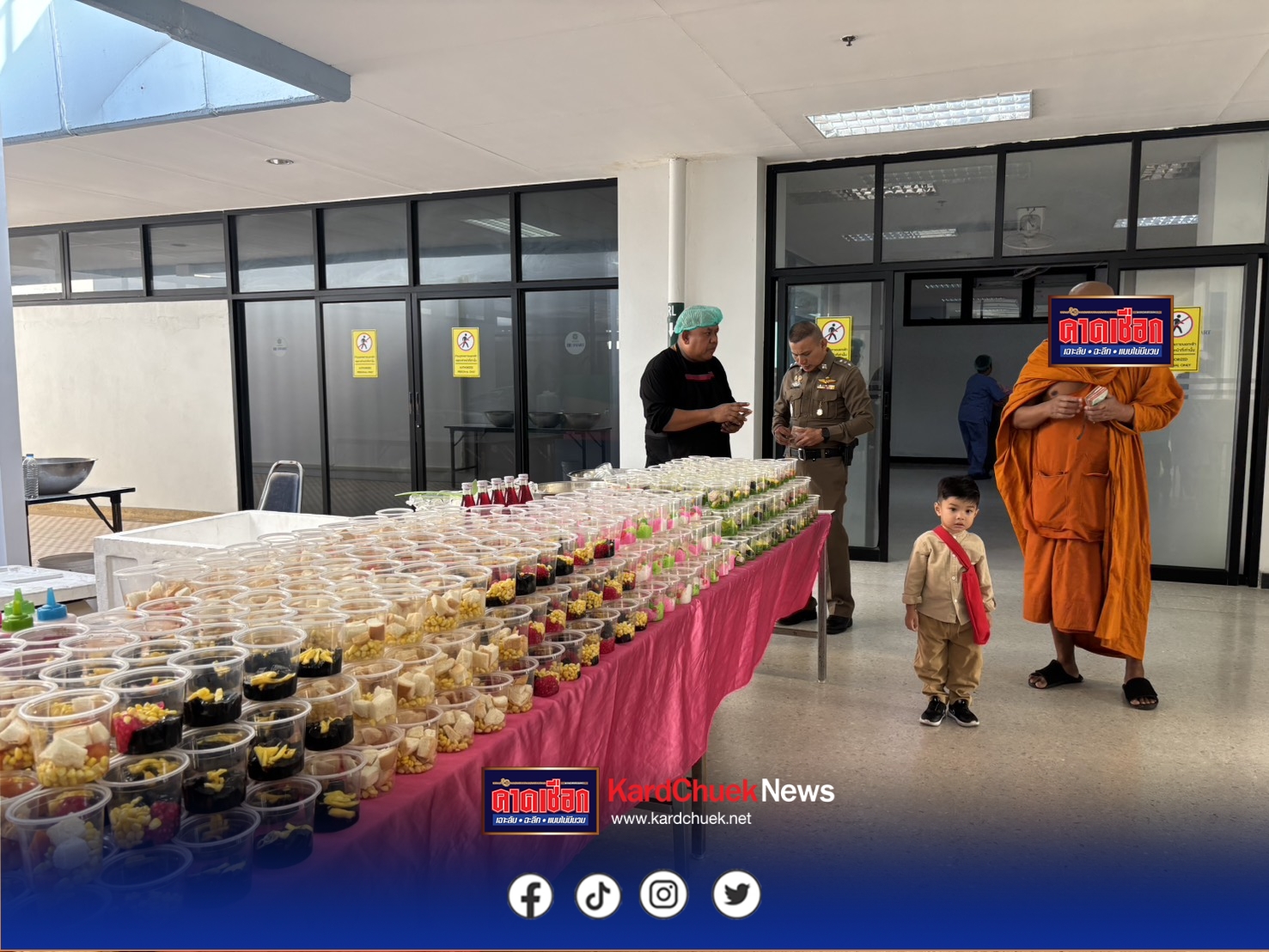 สมุทรปราการ-เจ้าคุณแจ้ตั้งโรงทานแจก ก๋วยเตี๋ยวและขนมหวานแก่บุคลากรรพ.บางพลีอุทิศถวายเป็นพระราชกุศลฯ