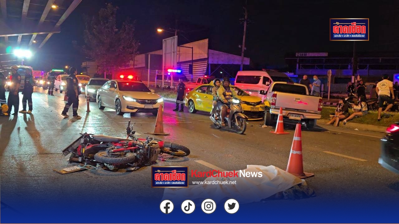 นนทบุรี สลด รองสารวัตรปราบปรามยาเสพติด ขับขี่รถจยย.เปลี่ยนเลนกระทันหัน ถูกกระบะเฉี่ยวล้ม รถตามหลังเหยียบซ้ำดับ