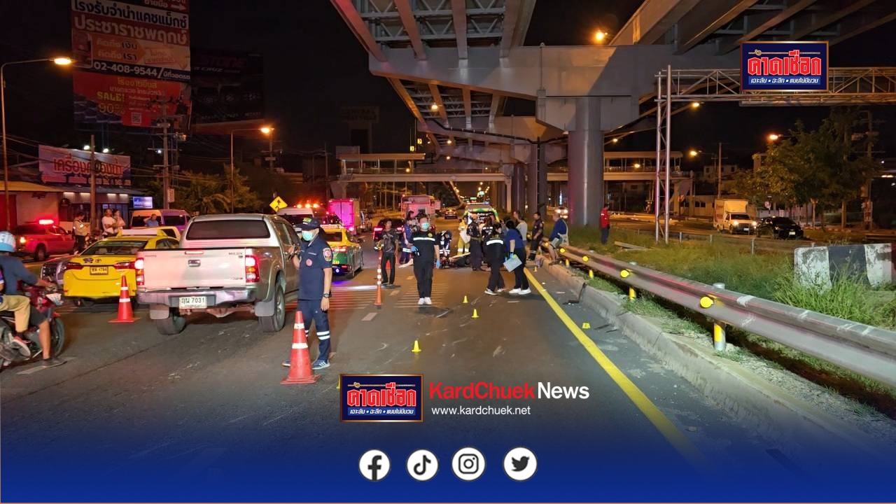เมื่อเวลา 23.30 น. วันที่ 4 ธ.ค. 68 เจ้าหน้าที่ตำรวจสภ.บางกรวย ได้รับแจ้งเหตุรถจยย.ถูกเฉี่ยวชนล้ม ก่อนรถตามหลังเหยียบซ้ำ มีผู้เสียชีวิต 1 ราย เหตุเกิดบริเวณช่องทางด่วน (ใกล้เคียงเซ็นทรัลเวสต์วิลล์) ถ.ราชพฤกษ์ ต.มหาสวัสดิ์ อ.บางกรวย จ.นนทบุรี จึงพร้อมด้วยอาสาสมัครมูลนิธิป่อเต็กตึ๊ง และแพทย์จากสถาบันนิติวิทยาศาสตร์รีบรุดตรวจสอบ